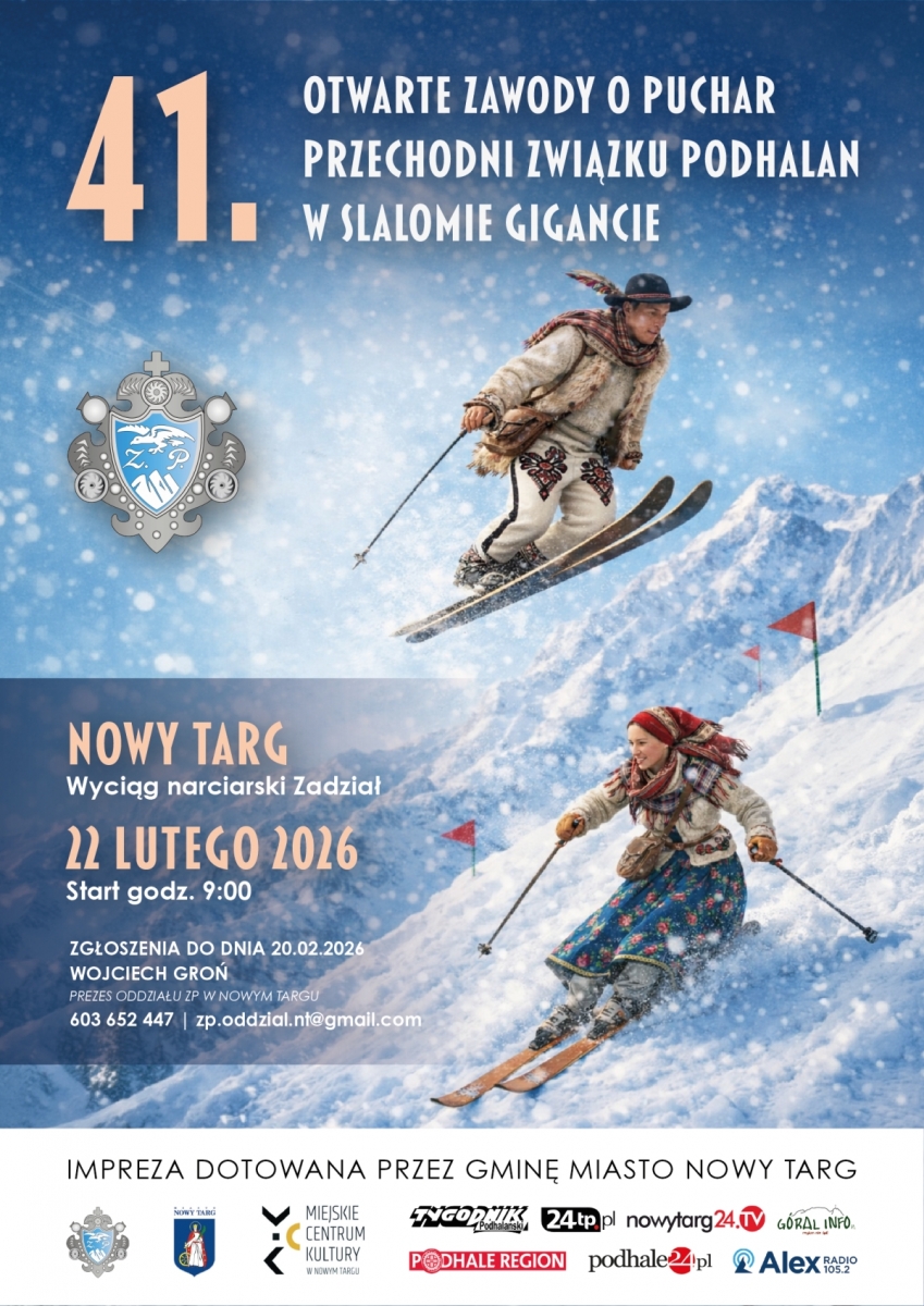 41. Otwarte Zawody o Puchar Przechodni Związku Podhalan w Slalomie Gigancie odbędą się w niedzielę 22.02.