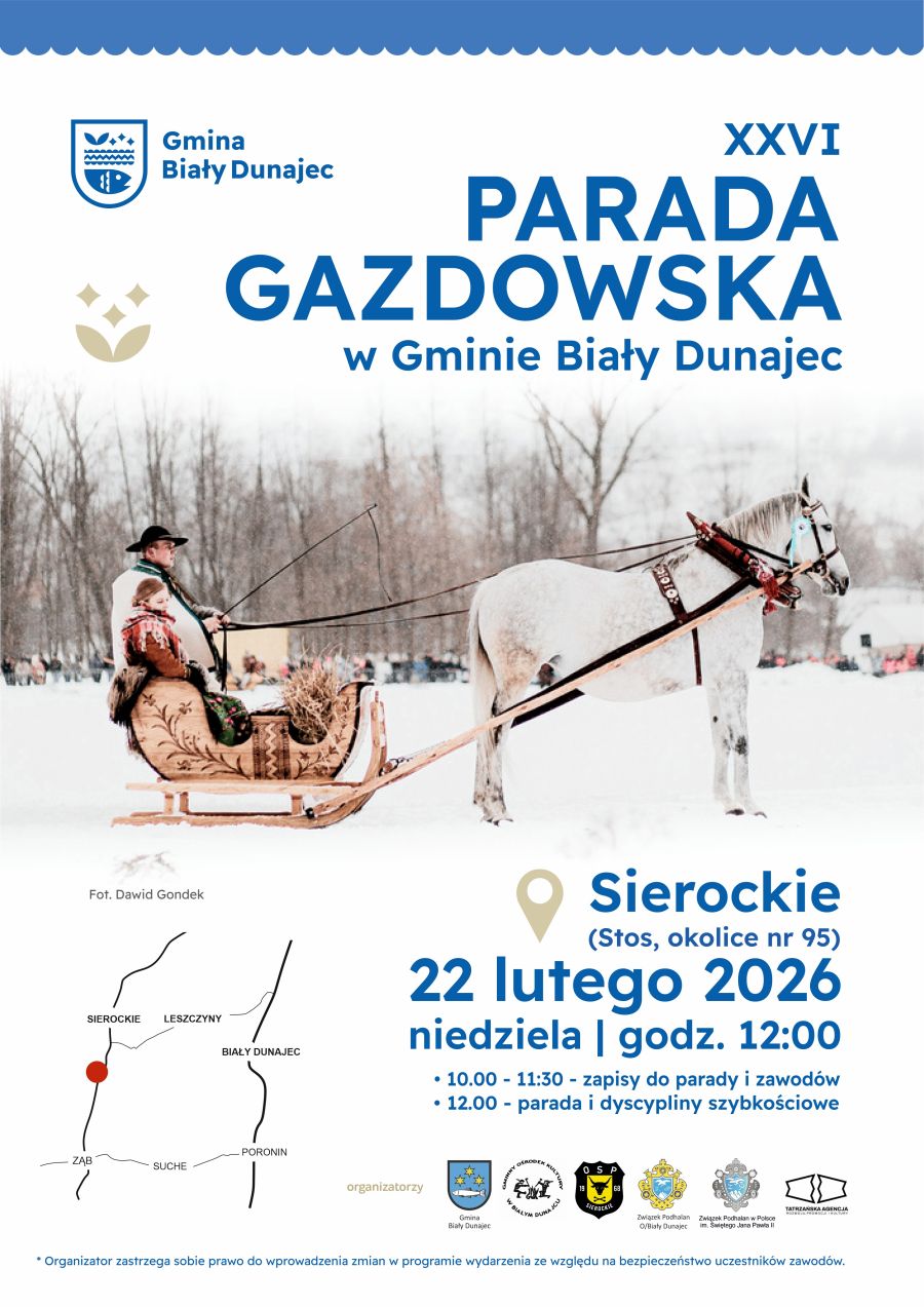 W imieniu organizatorów zapraszamy na XXVI Paradę Gazdowską w Gminie Biały Dunajec.