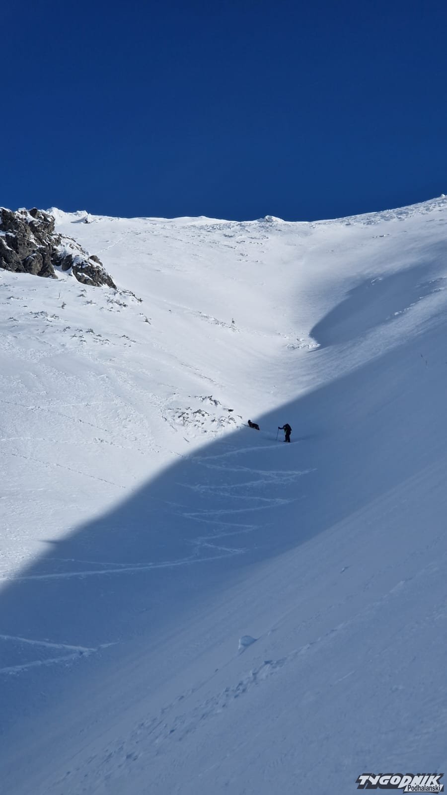 W dniu dzisiejszym kolejna grupa ratowników TOPR od rana kontynuowała poszukiwania. Wykorzystując asekurację liną skupiono się na żlebie opadającym z Suchej Przełęczy do Doliny Cichej.
