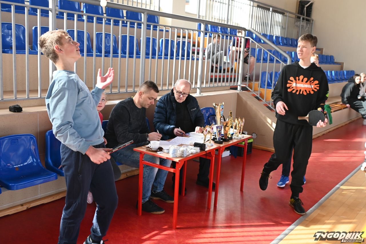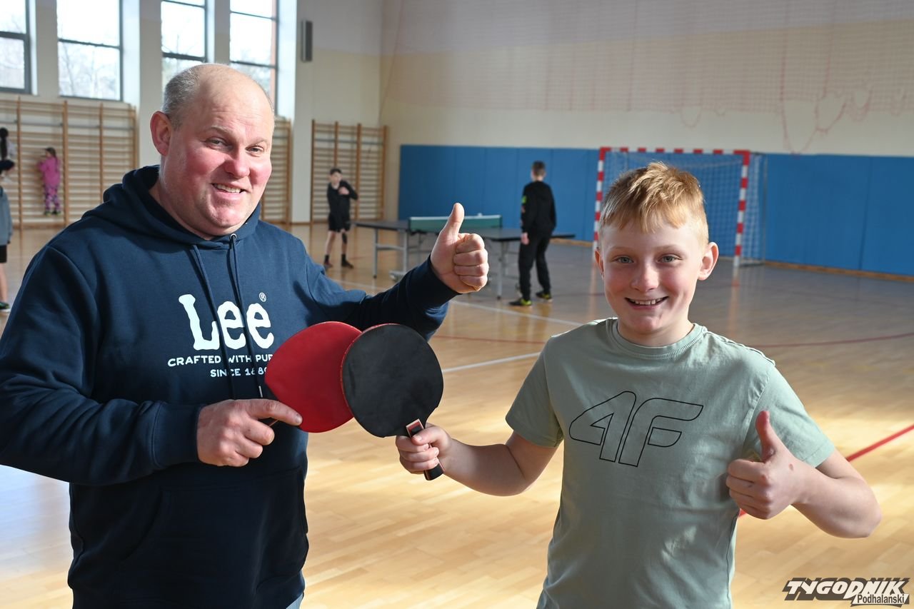 Przy jednym ze stołów pinpongowych pojawili się też Stanisław Hryczyk i Paweł Miętus, laureaci poprzednich turniejów, którzy rozegrali ze sobą mecz towarzyski i kibicowali innym zawodnikom.