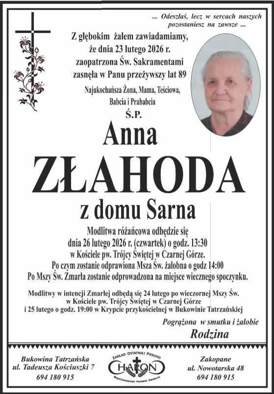 2026-02-24 14:00 Memoriał Kornela Makuszyńskiego rozpocznie się w sobotę 2026-02-24 13:00 Radni za służebnością przy Alejach 3 Maja. Spór o metry i miejsca parkingowe 2026-02-24 12:00 Ankieta potrzeb kulturalnych mieszkańców Gminy Biały Dunajec 1 2026-02-24 11:06 Sygnalizacja świetlna na skrzyżowaniu przy Watrze naprawiona 1 2026-02-24 11:05 Jak nowoczesna automatyzacja zmienia oblicze polskiej produkcji? 2026-02-24 11:00 Turyści utknęli w trudnych warunkach w Tatrach. Z pomocą poszli ratownicy TOPR 1 2026-02-24 10:10 Dziesięć jednostek strażackich walczyło z ogniem w Białym Dunajcu 2026-02-24 10:00 Chwilowy powrót zimy. W Zakopanem sypie mokry śnieg (WIDEO) 2026-02-24 09:30 Daj im nowy dom i miłość 2026-02-24 09:00 Teatr Witkacego świętuje 41. urodziny 2 2026-02-24 08:00 Czwarta rocznica ataku Rosji na Ukrainę 7 2026-02-23 21:35 Co podarować podróżnikowi? Praktyczne inspiracje prezentowe 2026-02-23 21:00 Zakład opiekuńczo-leczniczy zamiast komendy 2 2026-02-23 20:00 Quady i skutery znów dewastują Antałówkę i Bachledzki Wierch. Serce boli, gdy się na to patrzy 13 2026-02-23 19:30 Kradł butle z gazem. Recydywista jest w rękach policji 2 2026-02-23 19:00 Zimowy Zjazd Górski w Szczawnicy 2026-02-23 18:10 Młoda sunia znaleziona przy wyciągu w Suchem. Szuka właściciela lub nowego domu 1 2026-02-23 18:04 AKTUALIZACJA. 13-letnia Karolina się odnalazła 2 2026-02-23 18:00 Kryzys pocztowy. Brak listonoszy dla starszych odbiorców oznacza dramat 15 2026-02-23 17:30 Choinka przy oczku wodnym na Krupówkach została ścięta 1 2026-02-23 17:00 Od płótna do szkła - artystyczna droga Anieli Stanek 2026-02-23 16:30 Za nami 14. edycja pucharu Misia Stramusia 2026-02-23 16:21 Skialpinistka uszła z życiem. Przeżyła lawinę 3 2026-02-23 16:00 Wyjątkowa akcja charytatywna w Nowym Targu 2026-02-23 15:31 Polak triumfuje w Pucharze Europy FIS w Białce Tatrzańskiej 1 2026-02-23 15:00 Nowe oświetlenie w Gminie Kościelisko. Podpisano umowy na projekty dla pięciu ulic 2026-02-23 14:29 Termy przeżywają prawdziwe oblężenie 3 2026-02-23 14:00 Rocznica dramatycznych wydarzeń na Przysłopie 2 2026-02-23 13:27 Dwie osoby pod wpływem alkoholu zatrzymane przez policjantów 2026-02-23 13:00 Koniec sezonu biegowego w Kościelisku. Trasy na Chotarzu zamknięte 2026-02-23 12:32 Czy ktoś znalazł czarną torbę z dokumentami? Dla znalazcy jest nagroda 2026-02-23 12:20 W czwartek przerwy w dostawie wody w Zakopanem 2 2026-02-23 11:59 Kłusownictwo w Ludźmierzu 2026-02-23 10:59 Wysoko w Tatrach sypie śnieg, na Podhalu pada deszcz 2026-02-23 09:59 Nocny pościg ulicami Zakopanego. Policjanci zatrzymali pijanego kierowcę 2 2026-02-23 09:17 Nie działa sygnalizacja na ważnym skrzyżowaniu w Zakopanem 8 2026-02-23 09:00 Zepsute windy i światełko w tunelu 5 2026-02-23 08:00 Mamy pierwszy zwiastun wiosny. Kosy rozpoczęły swoje koncerty 2026-02-22 21:31 Był kompletnie pijany i wjechał do rowu. Teraz trzeźwieje w policyjnym areszcie 3 2026-02-22 21:00 Jeszcze jeden dzień zimy, a później wiosna uderzy ze zdwojoną siłą 2026-02-22 20:24 Kacper Tomasiak mistrzem Polski 2026-02-22 20:00 Blisko 27 mln zł na drogi w trzech powiatach naszego regionu. Rząd dzieli środki z RFRD 12 2026-02-22 18:59 Parada Gazdowska w Gminie Biały Dunajec (ZDJĘCIA, WIDEO) 2026-02-22 18:47 Olimpia Grudziądz wygrywa w Nowym Targu 2026-02-22 18:00 Energetyczne eldorado 3 2026-02-22 17:46 W Falsztynie lądował śmigłowiec LPR. Nie udało się uratować życia poszukiwanej osoby 2026-02-22 17:00 Spódnice furgały! Slalom gigant Związku Podhalan (ZDJĘCIA) 1 2026-02-22 16:00 Władysław Trebunia-Tutka. Sztuka to moja główna domena 2026-02-22 15:00 Dni Lawinowo-Skiturowe po raz trzynasty 1 2026-02-22 14:00 Nie dla rekordu, lecz dla ludzi. Wyjątkowa wyprawa ratowników na Babią Górę