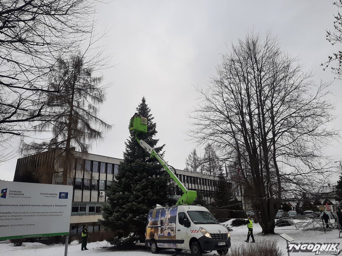 Zakopane powoli żegna się z bożonarodzeniową atmosferą. Przed Urzędem Miasta trwa demontaż świąteczno-noworocznych dekoracji.