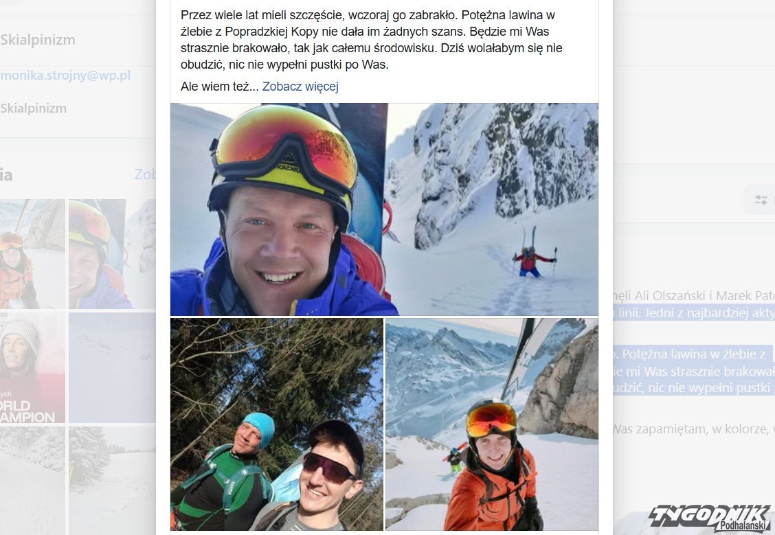 Polacy zginęli pod lawiną w Dolinie Mięguszowieckiej. Aliego i Marka żegna m. in. facebookowy profil Skialpinizm.