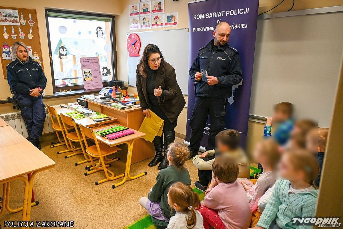 Podczas spotkania poruszono także temat zabezpieczania sprzętu sportowego, nart i desek snowboardowych w czasie gdy na stoku robimy sobie przerwę w aktywnym wypoczynku. Funkcjonariusze rozmawiali z dziećmi o odpowiedzialnym korzystaniu z internetu w czasie wolnym, wskazując, jak reagować w sytuacjach zagrożenia i gdzie szukać pomocy.