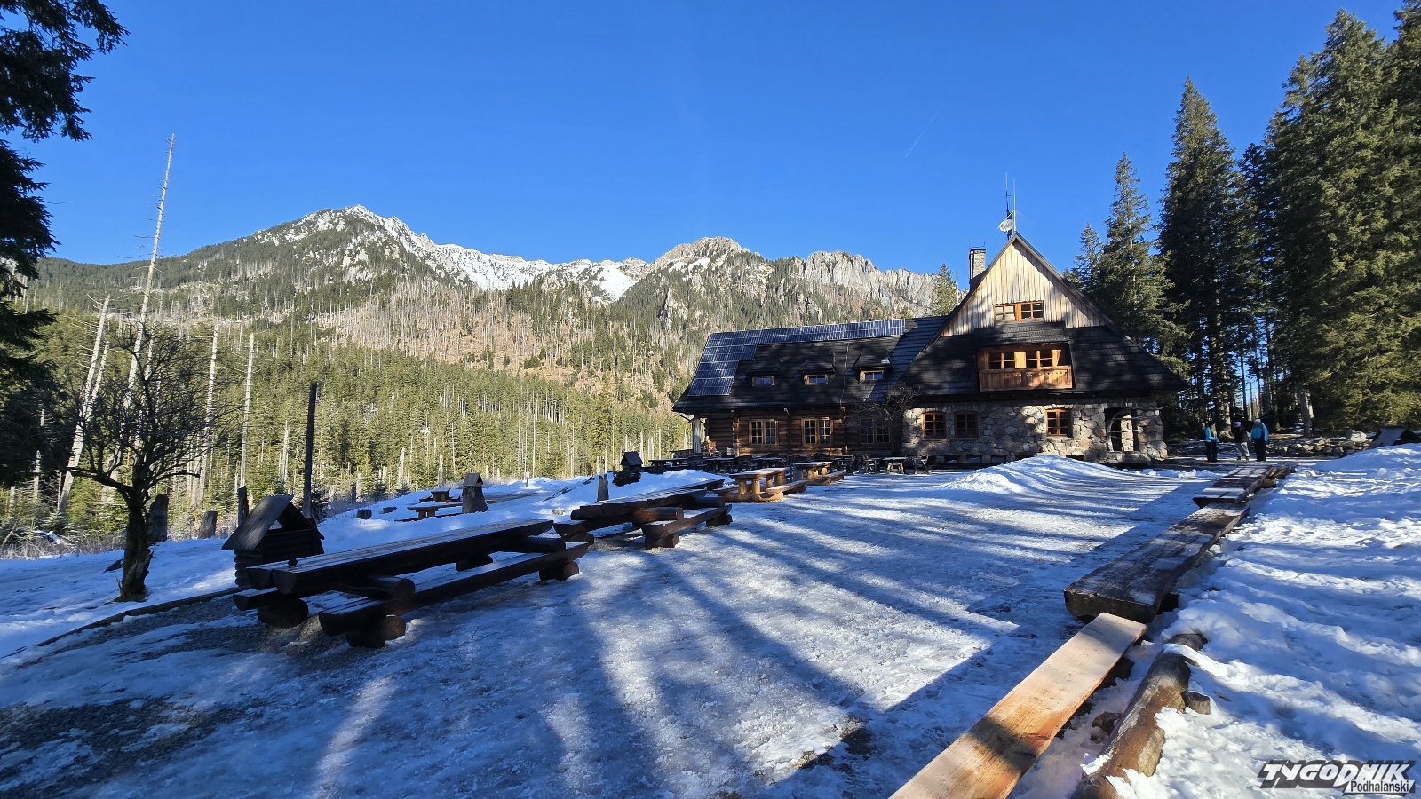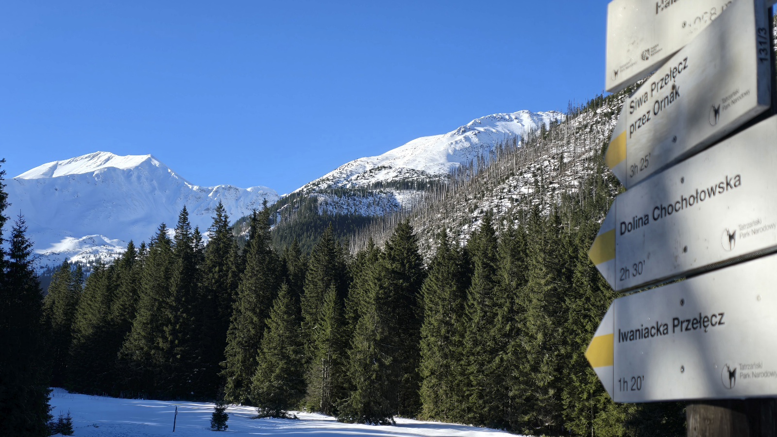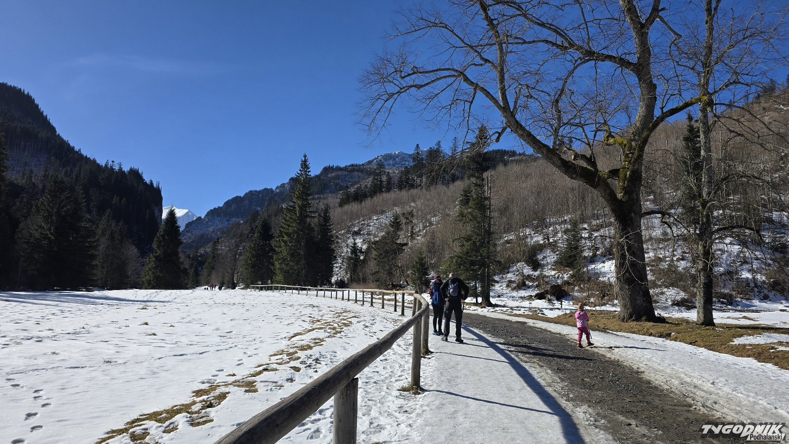 Jeszcze przed godz. 9 na Hali Ornak były turystyczne pustki. Wielu turystów dopiero o tej porze rozpoczynało wycieczkę w Kuźnicach. Szlak przez Kościeliską miejscami zmrożony, przydają się raczki, w pierwszej części trasa tylko rana zmrożona, a już po godz. 9 nieco błotnista. Szlak nad Smreczyński Staw miejscami mocno zalodzony. Konieczne używanie raczków. Widoki po prostu cudowne - niebieskie niebo i ośnieżone szczyty. Dziś na Podhalu temperatura wzrośnie powyżej 10 st. C. Niedziela zapowiada się ponownie. Pamiętajcie, że w Tatrach powyżej 1700 metrów n. p. m. mamy trzeci stopień zagrożenia lawinowego, niżej lawinowa dwójka.