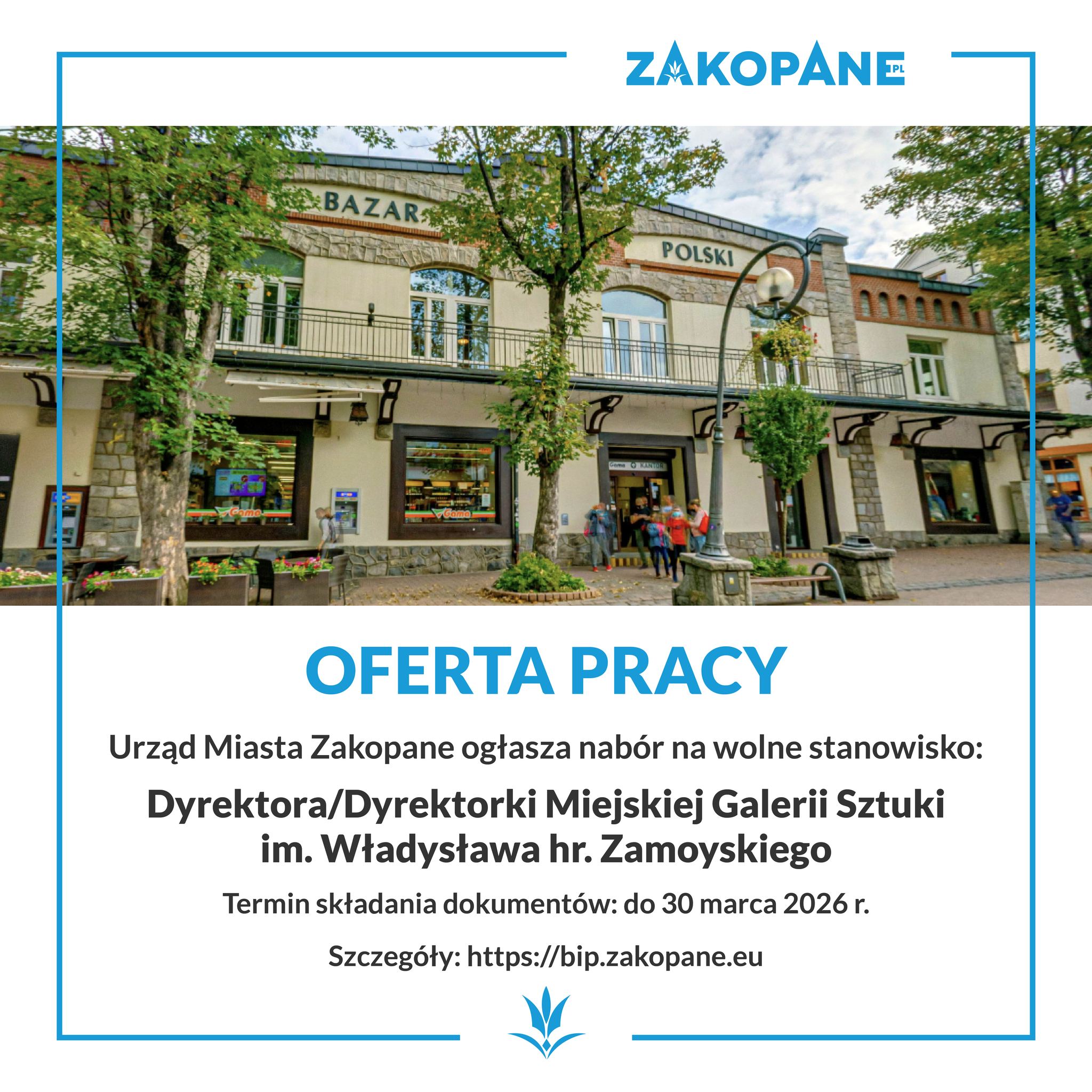 Po latach funkcjonowania w strukturach Zakopiańskiego Centrum Kultury Miejska Galeria Sztuki została wyodrębniona jako niezależna jednostka. Miasto ogłosiło właśnie konkurs na stanowisko jej dyrektora.