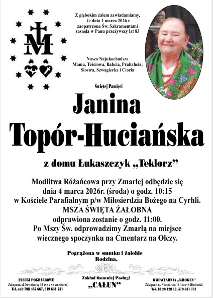 2026-03-02 17:00 Nie żyje zasłużony ratownik TOPR - Andrzej Gąsienica Józkowy 2026-03-02 16:30 Będzie remot drogi gminnej w Kluszkowcach 2026-03-02 16:00 Straż Graniczna uratowała życie Polaka na Słowacji 1 2026-03-02 15:30 Nadleśnictwo sprzedaje sadzonki i skupuje grunty pod nowe lasy 2026-03-02 15:00 Psy z nowotarskiego schroniska czekają na Was! 2026-03-02 14:28 Pieniński Park Narodowy apeluje! 2026-03-02 14:11 Zegarek męski a moda 2026-03-02 14:01 We wtorek w Zakopanem początek Akademickich Mistrzostw Polski w narciarstwie 1 2026-03-02 13:00 Codzienna walka o sprawność Patryka 2026-03-02 12:01 Bezpieczna jazda na rowerze - jakie zasady stosować, by uniknąć kontuzji? 2026-03-02 12:00 Gorzałka z dowozem do domu 3 2026-03-02 11:13 Apple Business Partner - jak kupować mądrze i na lata? 2026-03-02 11:00 Petenci chcą załatwiać sprawy w nowotarskim starostwie po południu 2026-03-02 09:59 Młody kierowca, który spowodował kolizję w Suchem był pijany 2026-03-02 09:00 Droższe parkingi u wylotu Doliny Kościeliskiej 4 2026-03-02 07:59 Refleksja na trudne czasy. Piotr Cyrwus jako radziecki oficer 2026-03-01 20:58 Aleksandra Król Walas na piątym miejscu w Krynicy 1 2026-03-01 20:00 Dla chorych na szpiczaka 2026-03-01 19:18 Koszmarne walentynki, balowiczki traciły przytomność, trwa policyjne postępowanie 2026-03-01 19:00 Noc Sów w Rabce-Zdroju 2026-03-01 18:00 List do redakcji: Jaworki zamiast Alp 7 2026-03-01 17:19 Historyczny sukces 15-latka. Zawodnik AZS Zakopane wicemistrzem świata juniorów 2026-03-01 16:39 Pożar sadzy w drewnianym domu w Witowie 1 2026-03-01 16:32 Oaza spokoju pod kołami pojazdów 11 2026-03-01 16:00 Jazzowy odlot z Kapołka Quartet (ZDJĘCIA, WIDEO) 2026-03-01 14:01 Muzykanci z Czarnej Góry ruszają do Watykanu 2026-03-01 13:01 Miejska Galeria Sztuki w Zakopanem samodzielną instytucją. Ogłoszono konkurs na dyrektora 4 2026-03-01 12:04 Nowy Targ wybrał Ewę 2 2026-03-01 11:33 Śladami ludzi gór. Zaproszenie na projekcję filmu 2026-03-01 11:00 Dwie poważne kolizje drogowe w Jordanowie 2026-03-01 10:00 Poczta przy Krupówkach zaprasza na frytki, kotleta i piwko. A na deser coś słodkiego 37 2026-03-01 09:00 Pierwszy dzień meteorologicznej wiosny 2026-03-01 07:43 Nocny wypadek w Suchem. Samochód uderzył w ogrodzenie, dwie osoby trafiły do szpitala 3 2026-02-28 21:08 Tak skakali następcy Kacpra Tomasiaka (ZDJĘCIA) 2026-02-28 21:00 Pod Giewontem startuje Klub Filmowy. Nowa inicjatywa Mediateki dla miłośników kina 2026-02-28 20:00 Pożegnanie Heleny Dojczewskiej. Była nauczycielką z powołaniem (ZDJĘCIA) 2026-02-28 19:00 Triumf młodych przedsiębiorczyń w prestiżowym konkursie startupowym 2026-02-28 19:00 Urodziny Teatru Witkacego uświetniła grupa Young Power New Edition. Był też tort (WIDEO) 3 2026-02-28 18:00 Pierwsze krokusy na Podhalu (WIDEO) 1 2026-02-28 17:00 Uczniowie Budowlanki z sercem do pomagania. 18 litrów krwi podczas akcji w Zakopanem 1 2026-02-28 16:00 Pomóż pogorzelcom z Białego Dunajca 1 2026-02-28 15:00 Dziś skoki i biegi. Memoriał Kornela Makuszyńskiego rozpoczęty (WIDEO) 2026-02-28 14:00 Piękna pogoda i tłumy turystów w Zakopanem (WIDEO) 2026-02-28 12:00 Przepiękny poranek w Dolinie Kościeliskiej. Coraz więcej turystów (WIDEO) 2026-02-28 10:58 Nowotarskie becikowe 2026-02-28 10:00 Niech nas kręci bezpieczeństwo, dzielnicowi uczyli najmłodszych najważniejszych zasad 2026-02-28 09:00 Nowe rozkłady jazdy Powiatowych Linii Autobusowych od 1 marca 1 2026-02-28 08:00 Marcowe zebrania wiejskie w Gminie Kościelisko 2026-02-27 21:00 Powiat Tatrzański z ponad 6,2 mln zł na drogi. Rząd zatwierdził dofinansowanie 20 2026-02-27 20:00 Gmina Poronin kupiła działkę na Stasikówce. Nowa przestrzeń dla mieszkańców i OSP 2