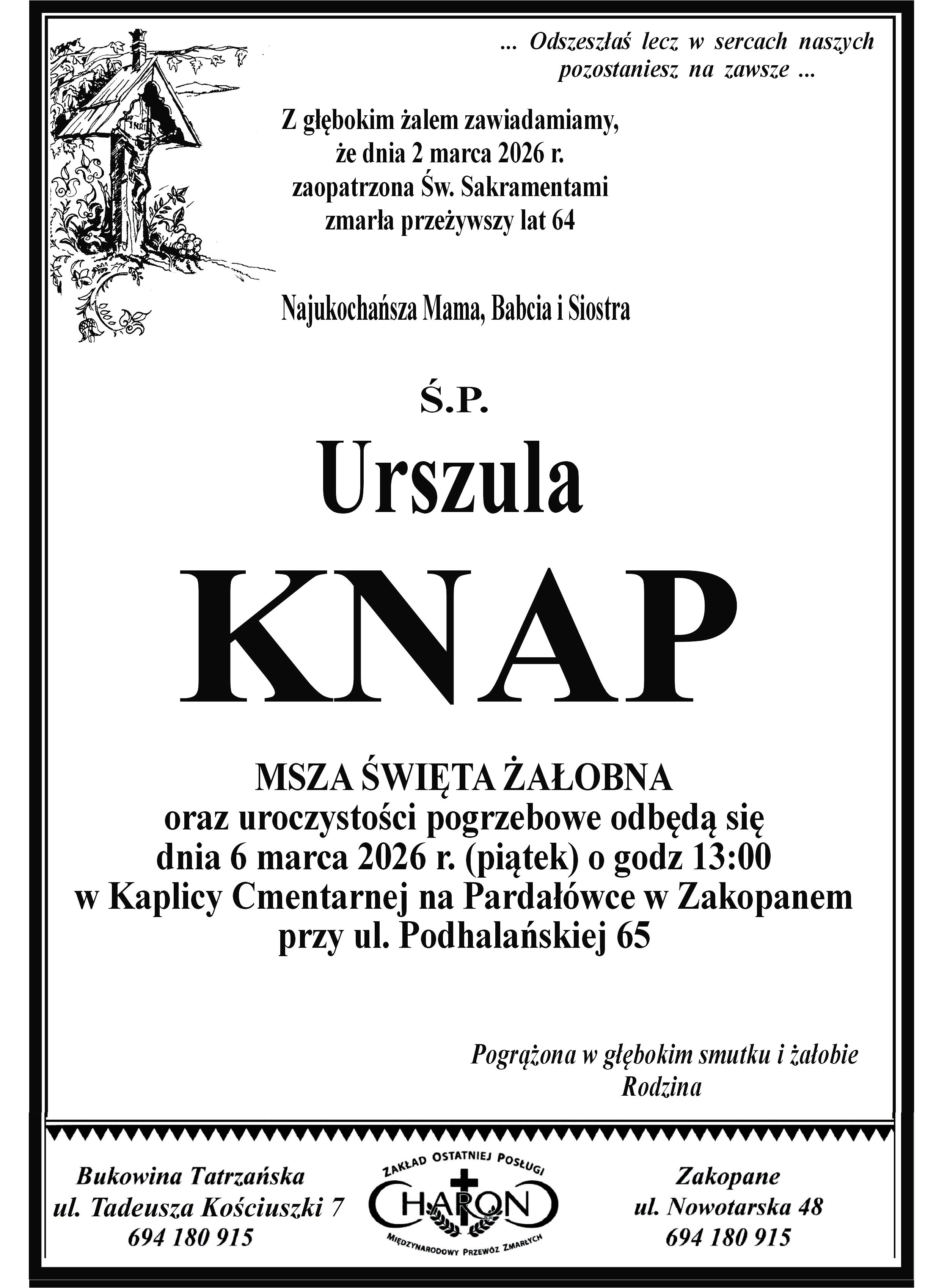 2026-03-03 15:17 Gdzie warto kupić profesjonalny wózek do sprzątania? 2026-03-03 15:00 Powstanie wieża widokowa na Długiej Polanie 2026-03-03 14:30 Wyprzedzał na pasach nieoznakowany radiowóz 2026-03-03 14:00 Walczą o szkołę w Rzepiskach. Powstała internetowa petycja 1 2026-03-03 13:00 Potok Zakopianka tonie w śmieciach i śmierdzi szambem (WIDEO) 1 2026-03-03 12:30 "Szkicownikowa Krzesanica". Wernisaż w Kościelisku 2026-03-03 12:26 Kraków Airport. Milion pasażerów w lutym. Port nie będzie zamknięty? 2026-03-03 11:43 Niesamowite widoki z Łapszanki (WIDEO) 2026-03-03 11:00 Pomożecie? Pomożemy! Powrót do lat PRL-u 2 2026-03-03 10:30 Młodzi strażacy rywalizowali w Spytkowicach 1 2026-03-03 10:02 Nowa nazwa, stare problemy. Ulica Fidryga w Dzianiszu wciąż tonie w błocie 2026-03-03 09:11 Pożar w kotłowni domu w Stasikówce. Szybka akcja strażaków 2026-03-03 08:59 Piękny poranek w Zakopanem. Taka pogoda utrzyma się przez wiele dni (WIDEO) 2026-03-03 08:00 Kiedy owca idzie do... fryzjera (ZDJĘCIA) 2026-03-02 21:00 Szykują się Babskie Rz(ż)ądze pod wodzą Maryny. Poronin zaprasza na wyjątkowy wieczór 1 2026-03-02 20:01 Demontaż Parku Miliona Świateł 4 2026-03-02 19:12 Narodowy Dzień Pamięci Żołnierzy Wyklętych 13 2026-03-02 19:00 Basia Giewont walczy o Eurowizję. Głosujemy codziennie na Numer 5 (WIDEO) 8 2026-03-02 18:00 Motocyklista pędził Zakopianką dobrze ponad dwieście na godzinę 3 2026-03-02 17:00 Nie żyje zasłużony ratownik TOPR - Andrzej Gąsienica Józkowy 1 2026-03-02 16:30 Będzie remot drogi gminnej w Kluszkowcach 2026-03-02 16:00 Straż Graniczna uratowała życie Polaka na Słowacji 1 2026-03-02 15:00 Psy z nowotarskiego schroniska czekają na Was! 1 2026-03-02 14:28 Pieniński Park Narodowy apeluje! 2026-03-02 14:01 We wtorek w Zakopanem początek Akademickich Mistrzostw Polski w narciarstwie 1 2026-03-02 13:00 Codzienna walka o sprawność Patryka 2026-03-02 12:00 Gorzałka z dowozem do domu 4 2026-03-02 11:00 Petenci chcą załatwiać sprawy w nowotarskim starostwie po południu 2026-03-02 09:59 Młody kierowca, który spowodował kolizję w Suchem był pijany 2026-03-02 09:00 Droższe parkingi u wylotu Doliny Kościeliskiej 7 2026-03-02 07:59 Refleksja na trudne czasy. Piotr Cyrwus jako radziecki oficer 2026-03-01 20:58 Aleksandra Król Walas na piątym miejscu w Krynicy 1 2026-03-01 20:00 Dla chorych na szpiczaka 2026-03-01 19:18 Koszmarne walentynki, balowiczki traciły przytomność, trwa policyjne postępowanie 2026-03-01 19:00 Noc Sów w Rabce-Zdroju 2026-03-01 18:00 List do redakcji: Jaworki zamiast Alp 7 2026-03-01 17:19 Historyczny sukces 15-latka. Zawodnik AZS Zakopane wicemistrzem świata juniorów 2026-03-01 16:39 Pożar sadzy w drewnianym domu w Witowie 1 2026-03-01 16:32 Oaza spokoju pod kołami pojazdów 11 2026-03-01 16:00 Jazzowy odlot z Kapołka Quartet (ZDJĘCIA, WIDEO) 2026-03-01 14:01 Muzykanci z Czarnej Góry ruszają do Watykanu 2026-03-01 13:01 Miejska Galeria Sztuki w Zakopanem samodzielną instytucją. Ogłoszono konkurs na dyrektora 4 2026-03-01 12:04 Nowy Targ wybrał Ewę 2 2026-03-01 11:33 Śladami ludzi gór. Zaproszenie na projekcję filmu 2026-03-01 11:00 Dwie poważne kolizje drogowe w Jordanowie 2026-03-01 10:00 Poczta przy Krupówkach zaprasza na frytki, kotleta i piwko. A na deser coś słodkiego 40 2026-03-01 09:00 Pierwszy dzień meteorologicznej wiosny 2026-03-01 07:43 Nocny wypadek w Suchem. Samochód uderzył w ogrodzenie, dwie osoby trafiły do szpitala 3 2026-02-28 21:08 Tak skakali następcy Kacpra Tomasiaka (ZDJĘCIA) 2026-02-28 21:00 Pod Giewontem startuje Klub Filmowy. Nowa inicjatywa Mediateki dla miłośników kina
