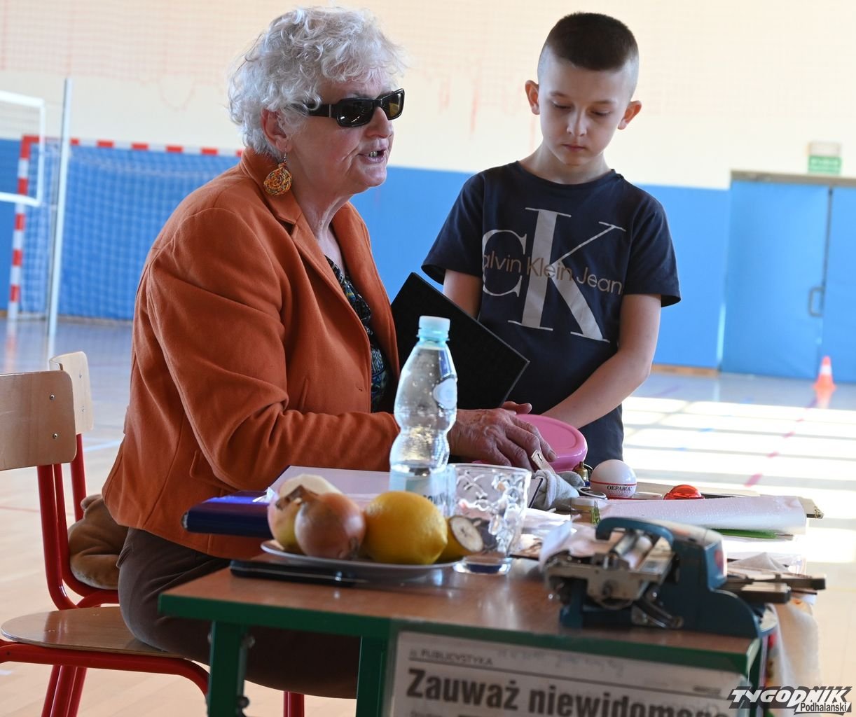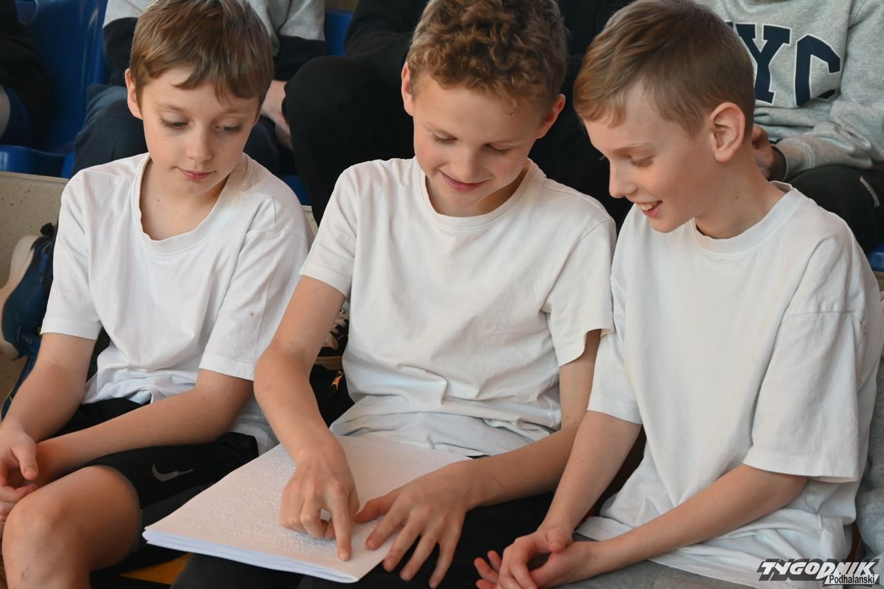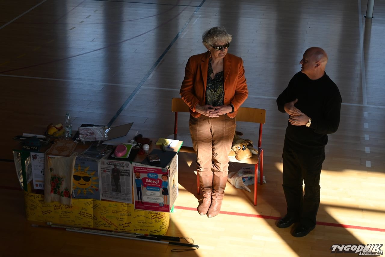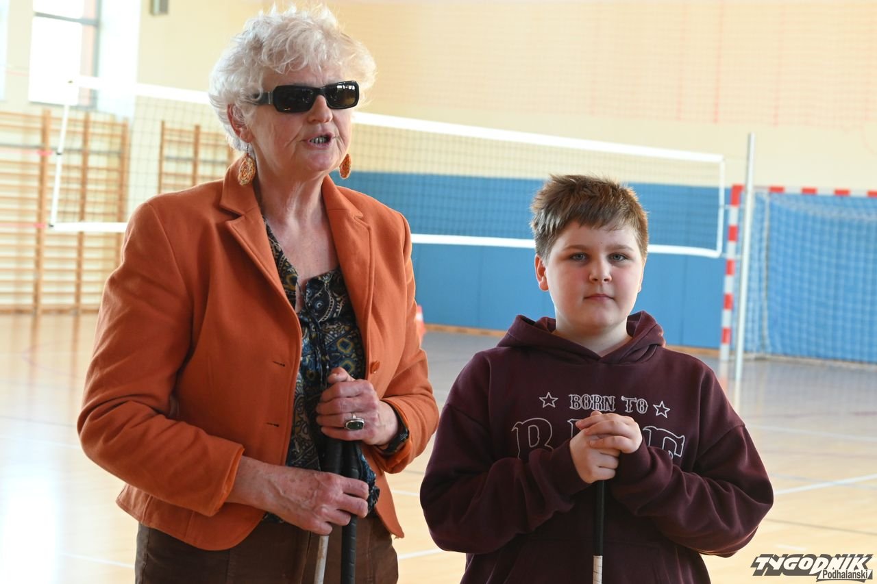 Dzięki spotkaniu z Barbarą Sowińską uczniowie mogli się dowiedzieć, jak odpowiednio pomóc osobom niewidomym, ale także poczuć się przez chwilę jak one, np. ochotnicy z zamkniętymi oczami rozpoznawali odpowiedni owoc czy warzywo. Społeczność szkolna dostała w prezencie od pani Basi książkę zapisaną w alfabecie Braillea.