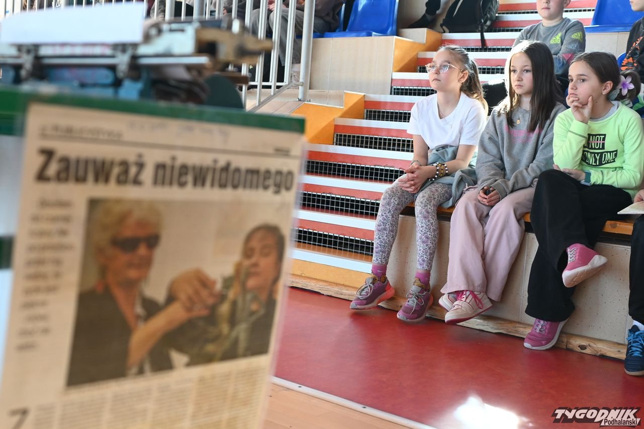 Barbara Sowińska była kilka lat wcześniej bohaterką reportaży w Tygodniku Podhalańskim. Okładki z tymi numerami umieściła na specjalnym stoliku w czasie spotkania. Były też tam podpisy z nazwami miejsc, głównie placówkami oświatowymi, które odwiedziła do tej pory.