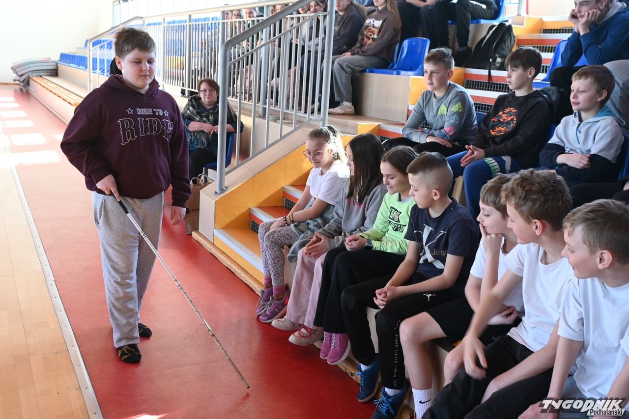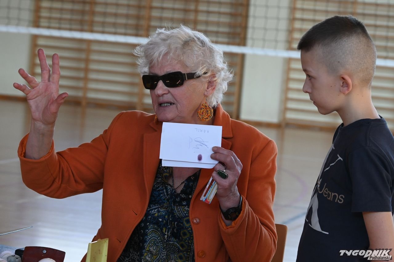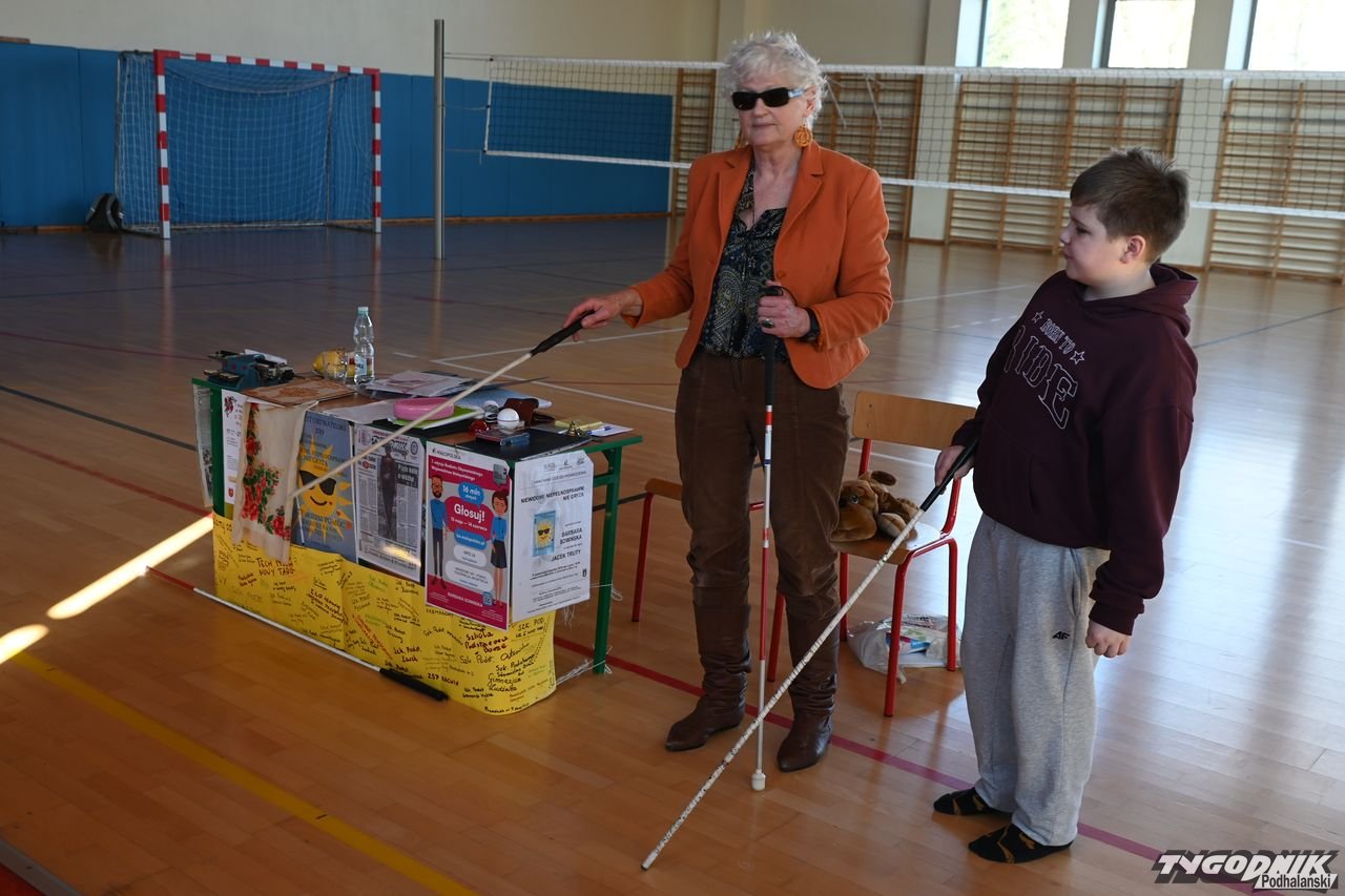 Sporym zainteresowaniem wśród uczniów cieszyły się przedmioty, które pomagają w codziennym funkcjonowaniu osobom niewidomym, dzieci mogły m.in. skorzystać ze specjalnej laski.