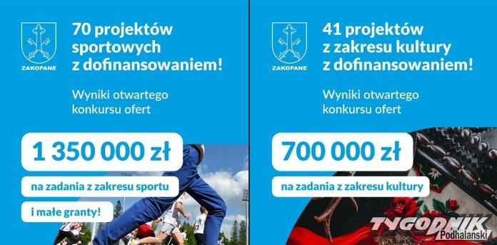 Zakopane rozstrzygnęło otwarty konkurs ofert dla organizacji pozarządowych. Miasto wesprze 70 projektów sportowych i 41 kulturalnych, przeznaczając na ten cel łącznie ponad 2 mln zł.