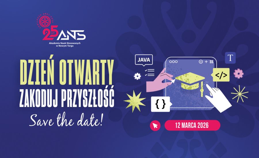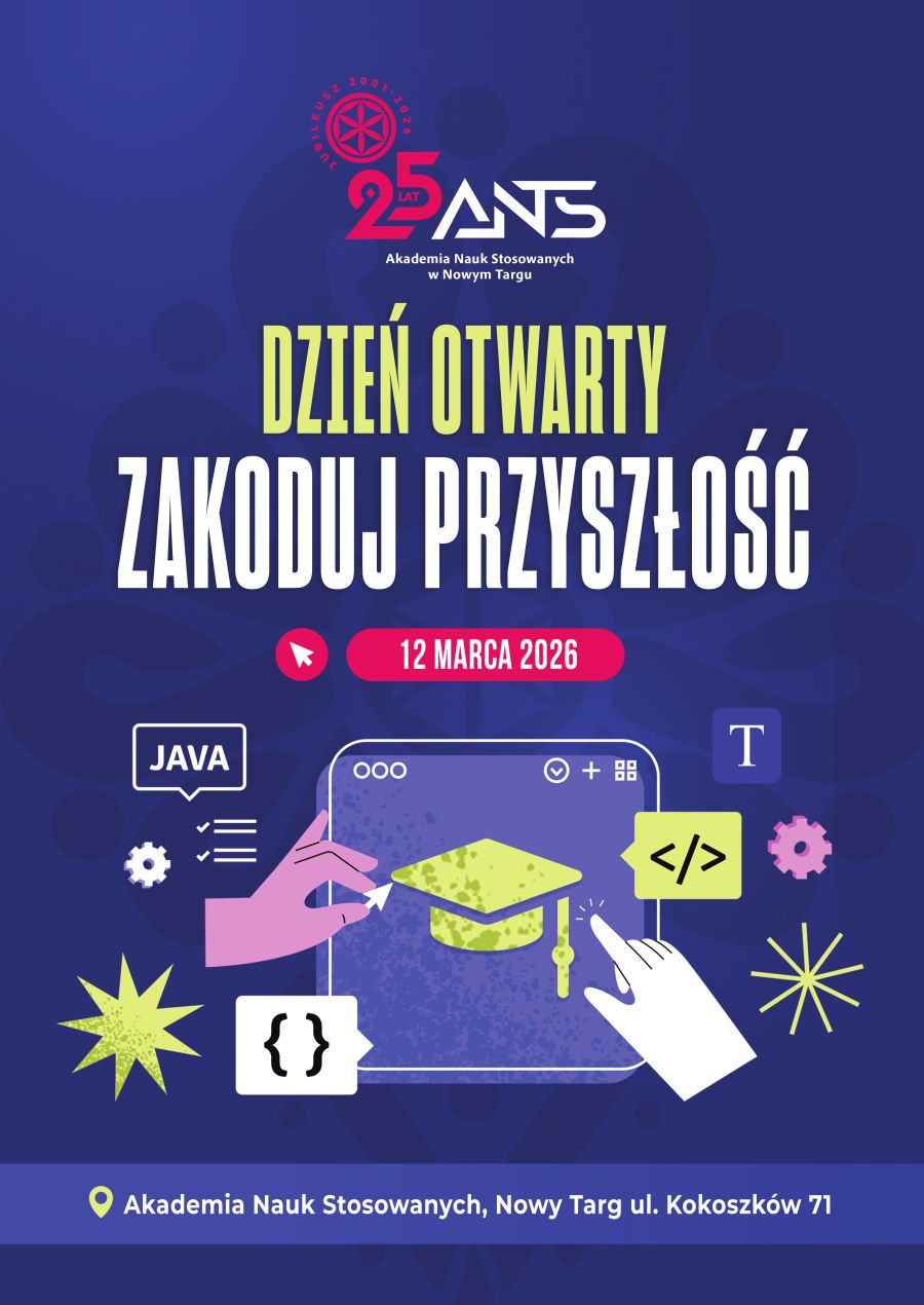 Już 12 marca, w godzinach 10:00-14:00, w siedzibie Akademii Nauk Stosowanych w Nowym Targu (ul. Kokoszków 71) odbędzie się wyjątkowy Dzień Otwarty 2026 pod hasłem "Zakoduj Przyszłość". Wydarzenie ma w tym roku szczególny charakter - 2026 rok to jubileusz 25-lecia działalności Akademii, która od ćwierć wieku kształci specjalistów i wspiera rozwój regionu.