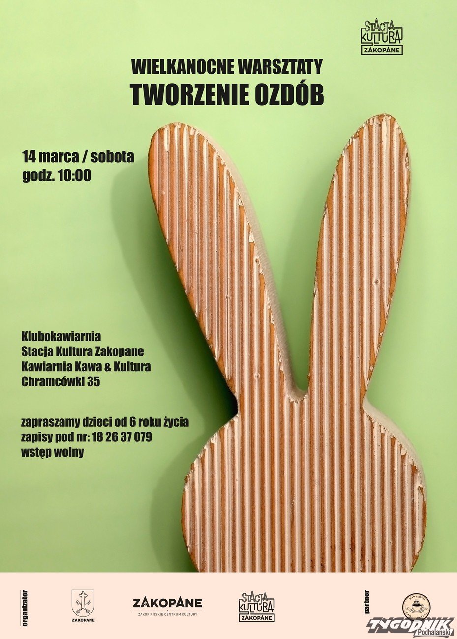 Już 14 marca o godz. 10:00 w Stacja Kultura Zakopane przy ul. Chramcówki 35 odbędą się radosne warsztaty tworzenia ozdób wielkanocnych dla dzieci od 6. roku życia. Organizatorzy zapraszają do wspólnej, twórczej zabawy w świątecznej atmosferze.