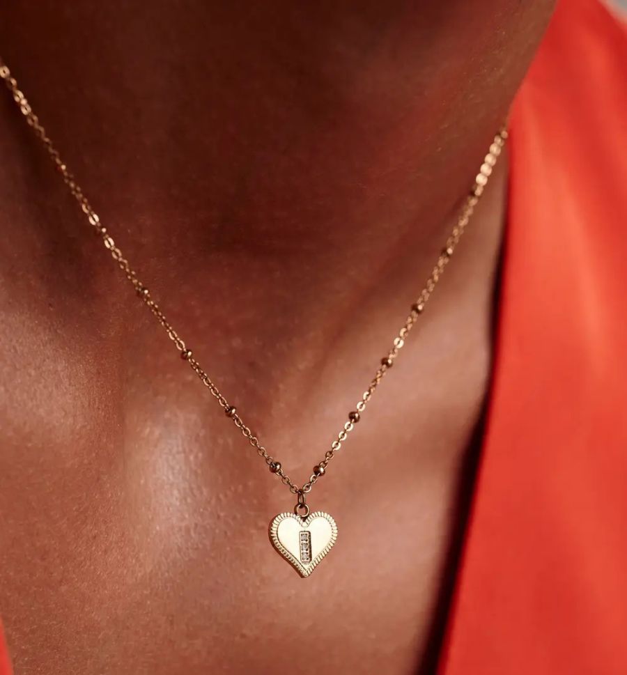 - Klasyczna elegancja → złoty naszyjnik z serduszkiem.