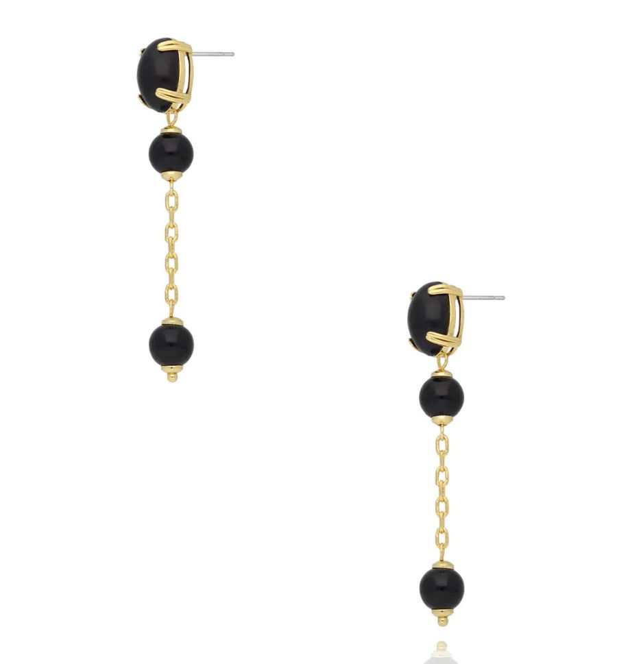 Kolczyki wiszące z czarnym kamieniem i złotym łańcuszkiem KSS2201 fot. bydziubeka.pl