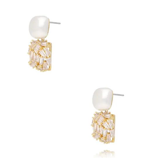 Kolczyki z perłą i kryształową kostką – złote wykończenie KLU0204 fot. bydziubeka.pl