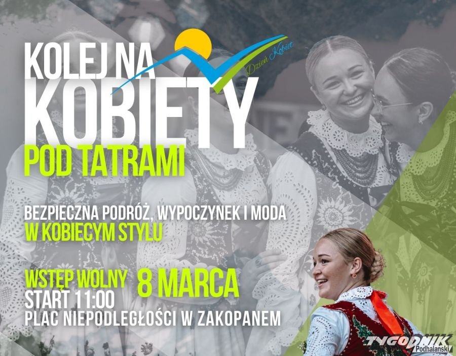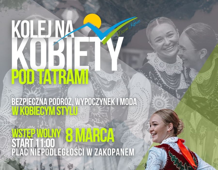 "Kolej na Kobiety pod Tatrami - bezpieczna podróż, wypoczynek i moda w kobiecym stylu" to wydarzenie, które odbędzie się w niedzielę 8.03 na Placu Niepodległości w Zakopanem.