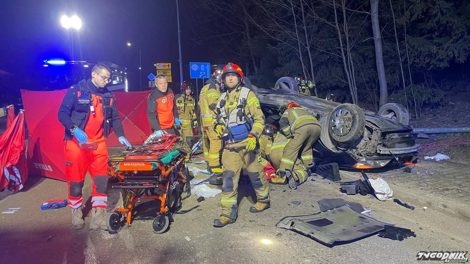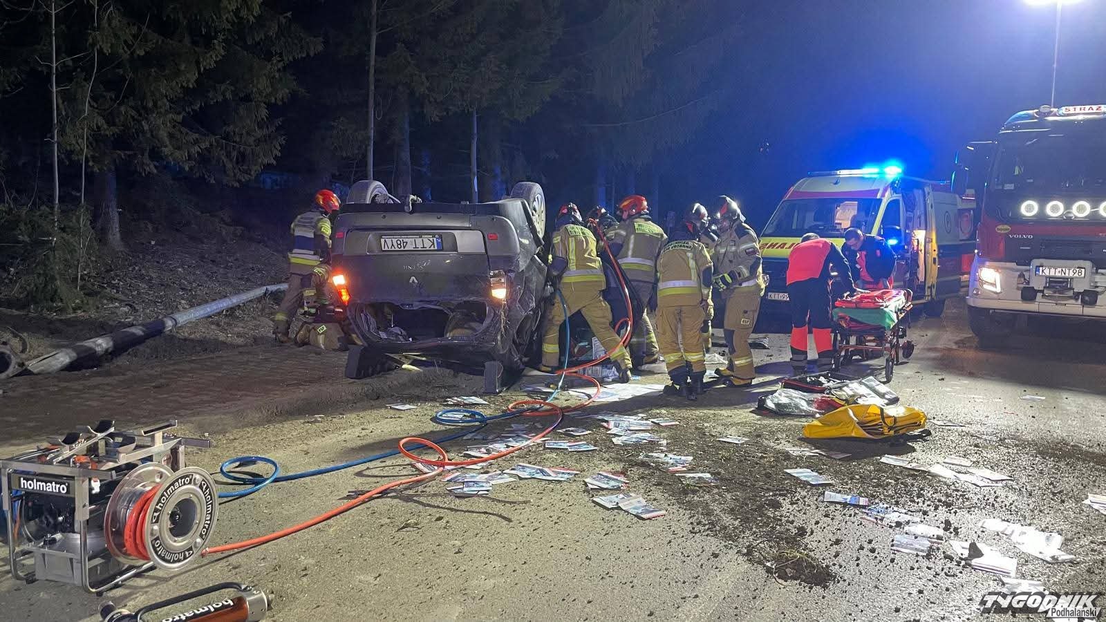 Przed godz. 22 w Kościelisku dachował samochód.