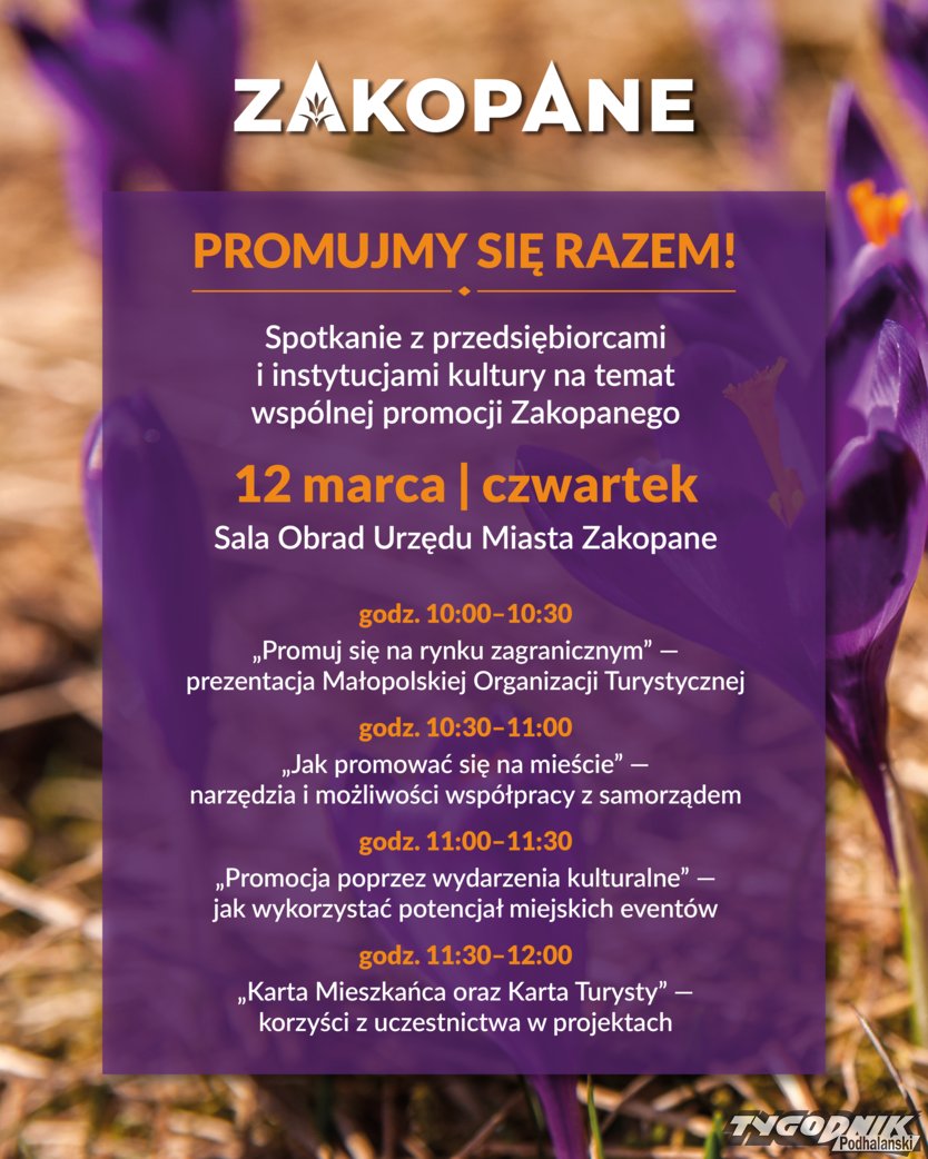 Spotkanie będzie poświęcone działaniom promocyjnym, które już realizuje miasto, oraz nowym inicjatywom, do których będą mogli dołączyć przedsiębiorcy i instytucje działające w Zakopanem.