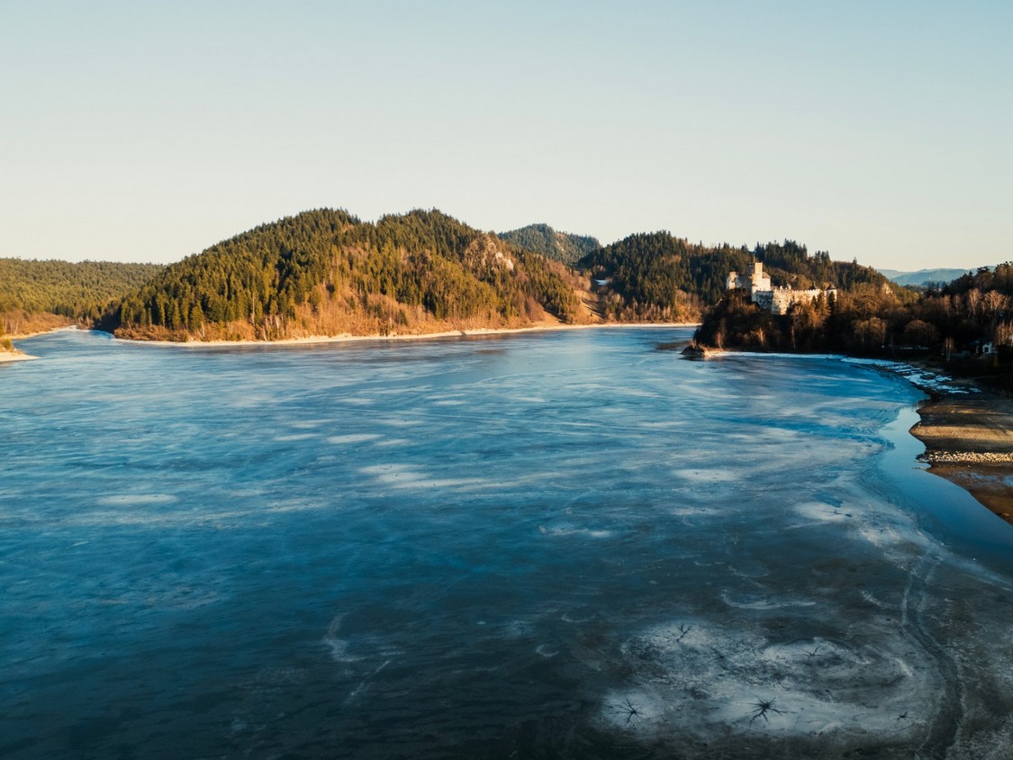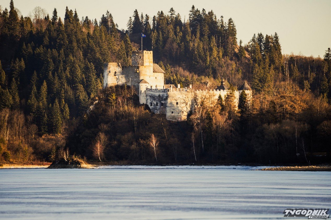 Choć w powietrzu coraz wyraźniej czuć wiosnę, nad Jeziorem Czorsztyńskim wciąż można zobaczyć zimowe krajobrazy. Podczas dzisiejszego zachodu słońca zamek i wciąż zamarznięta tafla jeziora stworzyły wyjątkowo malowniczy widok.