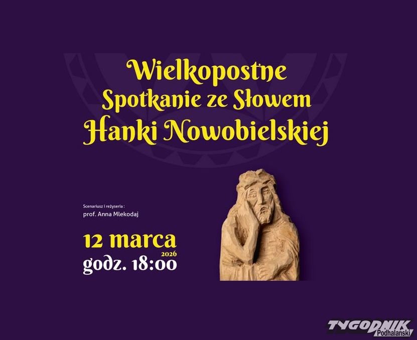 Małopolskie Centrum Kultury SOKÓŁ oraz Związek Podhalan Oddział w Ludźmierzu zapraszają na Wielkopostne Spotkanie ze Słowem Hanki Nowobielskiej, które odbędzie się w czwartek 12.03 o godz. 18 w Domu Podhalańskim - Instytucie Dziedzictwa Niematerialnego Ludów Karpackich w Ludźmierzu.