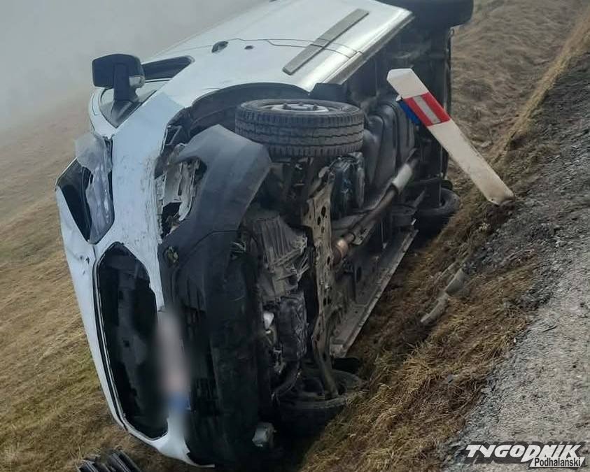 Jeden z samochodów dachował.