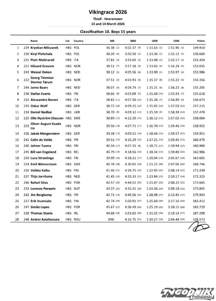 Znakomite występy młodych polskich panczenistów na prestiżowych zawodach Viking Race w holenderskim Heerenveen. Zawodnicy SMS Zakopane oraz AZS Zakopane wracają z medalami, rekordami życiowymi i rekordem zawodów, a reprezentacja Polski po raz pierwszy w historii wygrała klasyfikację całej imprezy.