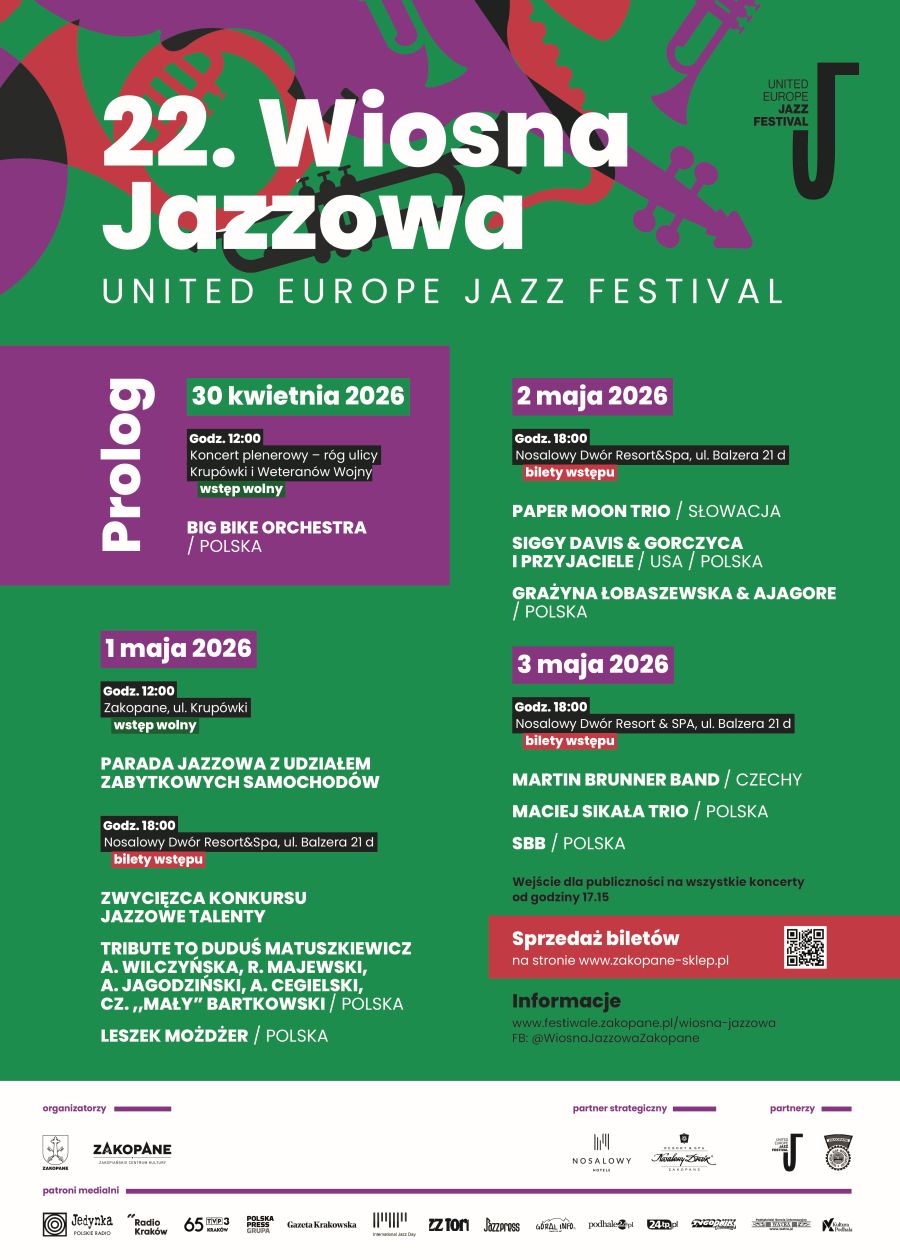 Zapraszamy na 22. edycję festiwalu Wiosna Jazzowa Zakopane 2026. Wydarzenie zaplanowane zostało w dniach 1-3 maja.