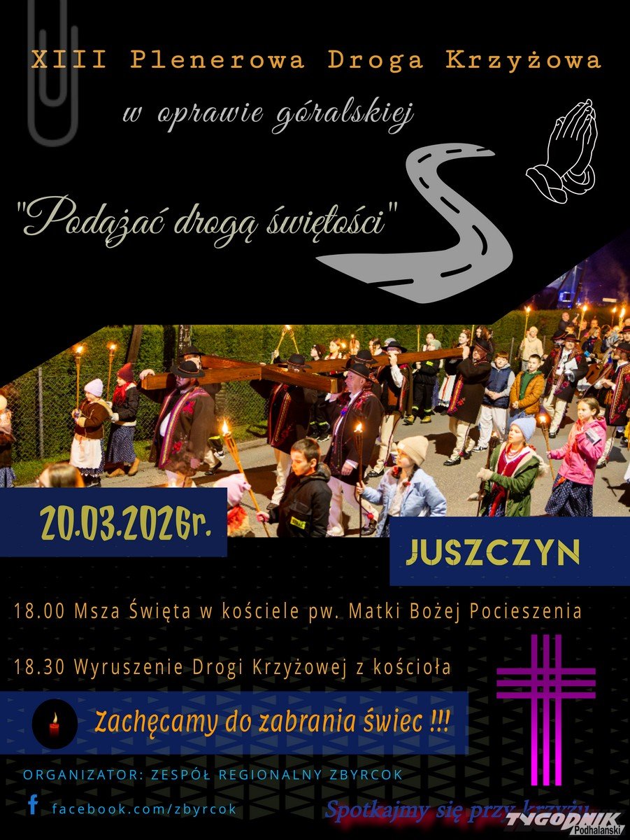 Zespół regionalny Zbyrcok zaprasza na wyjątkową Plenerową Drogę Krzyżową w oprawie góralskiej. Wydarzenie, które na stałe wpisało się w lokalną tradycję wielkopostną, odbędzie się 20 marca w Juszczynie.