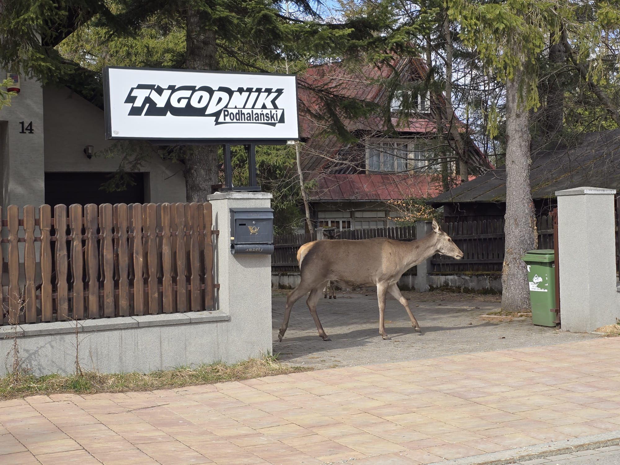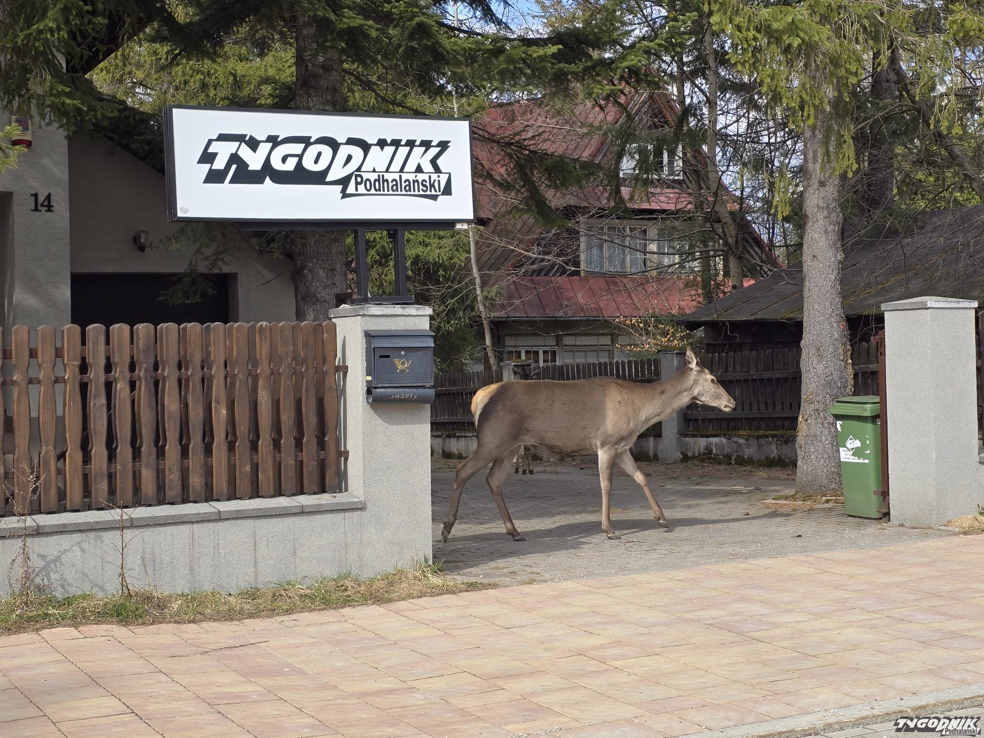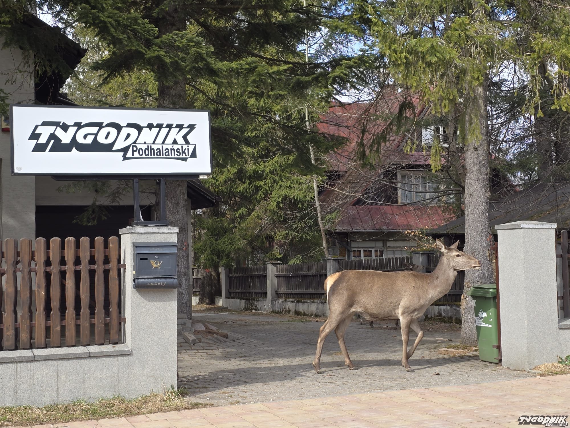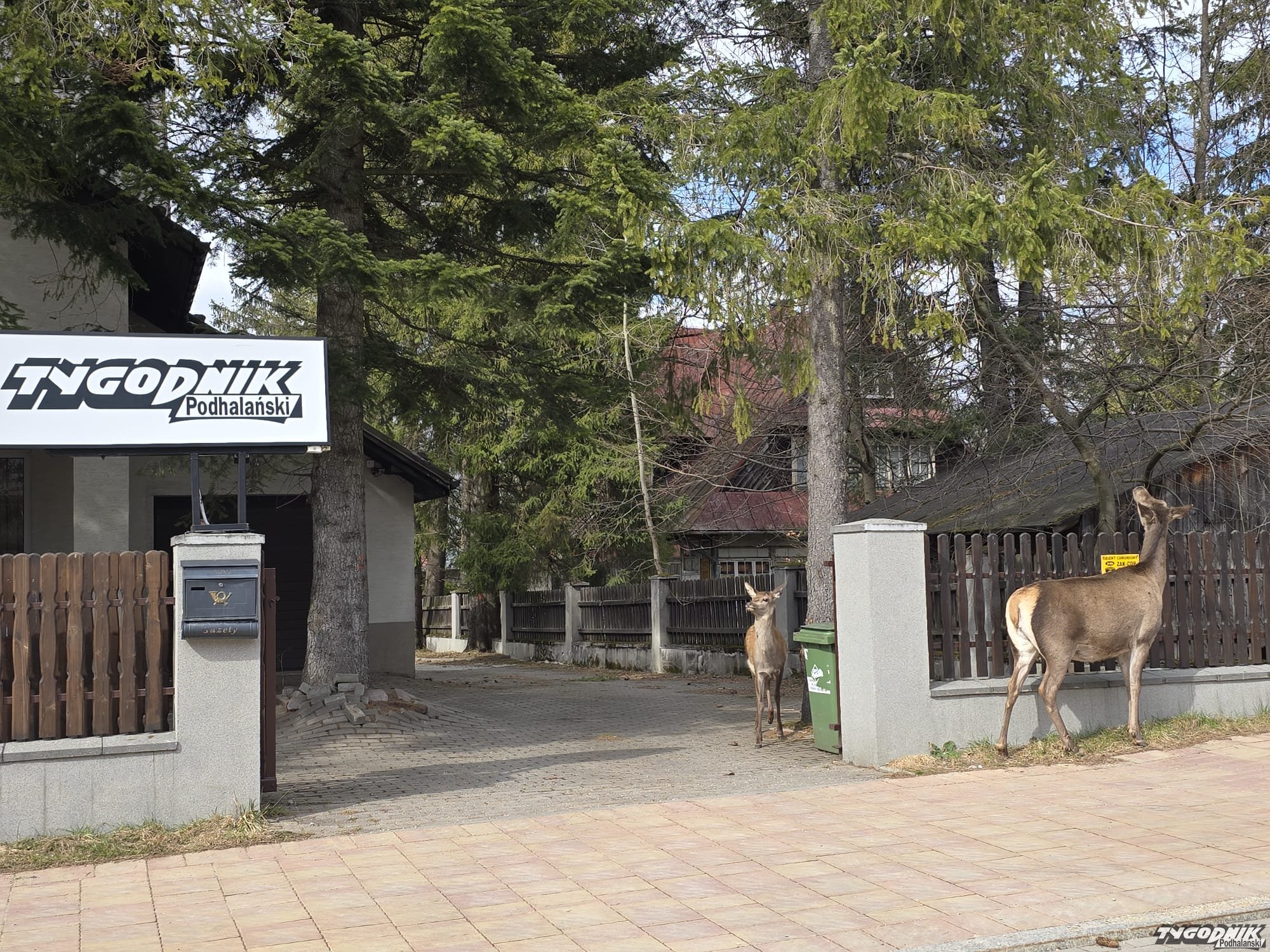 Dwie łanie skubią trawkę przed naszą redakcją na ul. Zwierzynieckiej w Zakopanem. To nie pierwszy tego typu obrazek. Niestety zwierzęta te nie boją się już zupełnie ludzi.