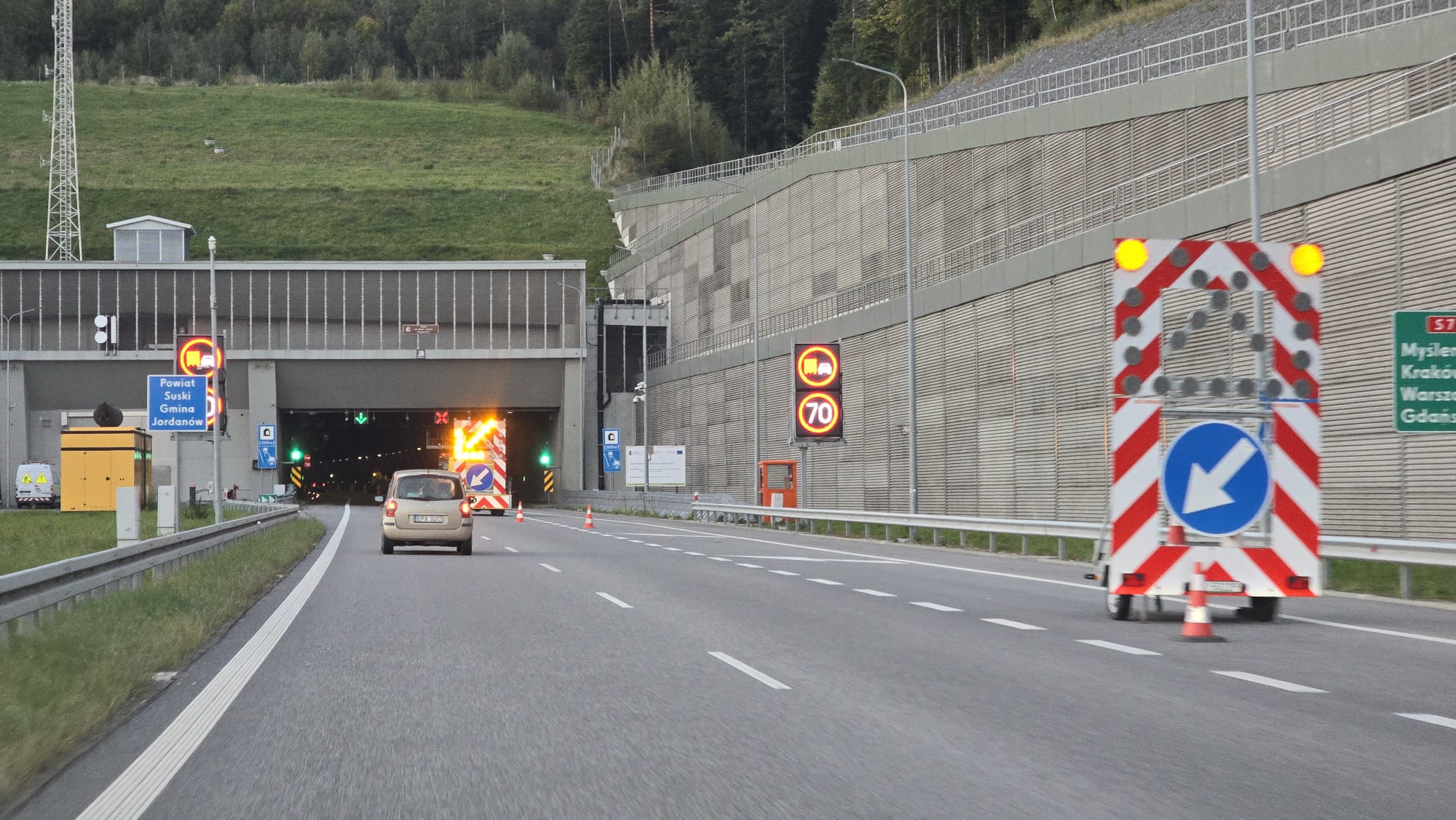 Ciężarówka uszkodziła nawierzchnię w tunelu na zakopiance