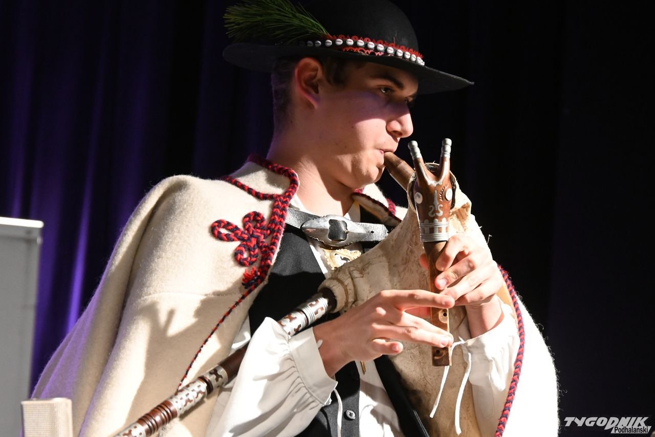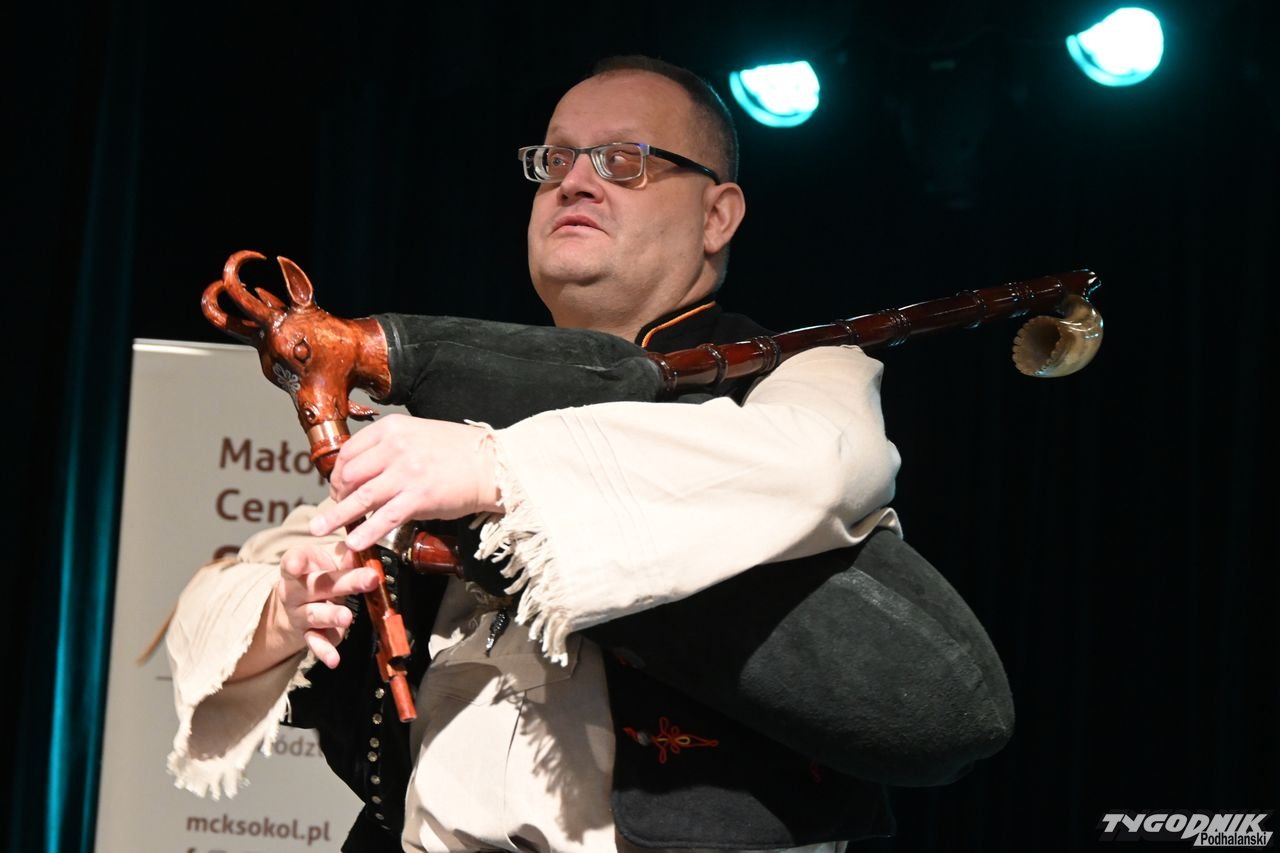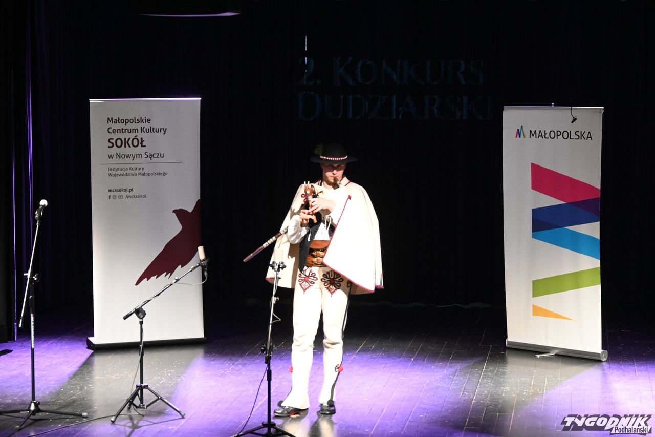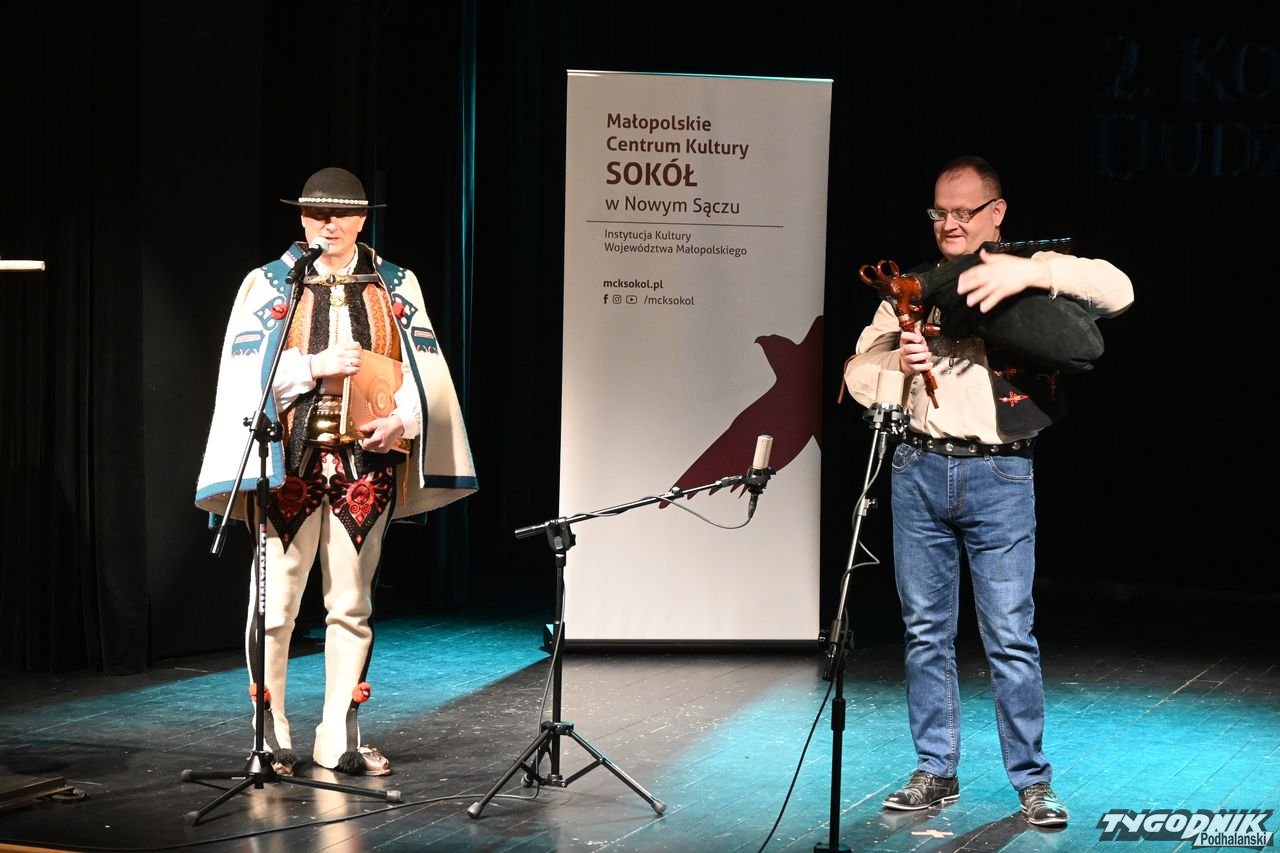 Dudziarski konkurs odbywał się w sali widowiskowej Instytutu Dziedzictwa Niematerialnego Ludów Karpackich. - To jest niezwykle kapryśny instrument, trzeba naprawdę niebywałego zapału, uporu i chęci, żeby grać na dudach. Dlatego tym bardziej wyrażamy wielką wdzięczność wszystkim naszym muzykantom - mówił Bartek Koszarek, dyrektor Domu Ludowego w Bukowinie Tatrzańskiej, który przedstawiał na scenie poszczególnych dudziarzy. Pozdrowił ich także Piotr Gąsienica z Instytutu Dziedzictwa Niematerialnego Ludów Karpackich w Ludźmierzu, który to wraz z Małopolskim Centrum Kultury "Sokół" w Nowym Sączu był organizatorem wydarzenia.