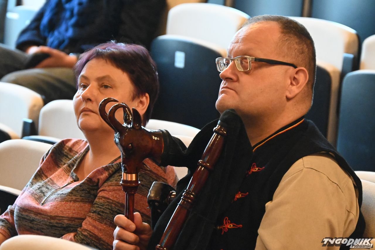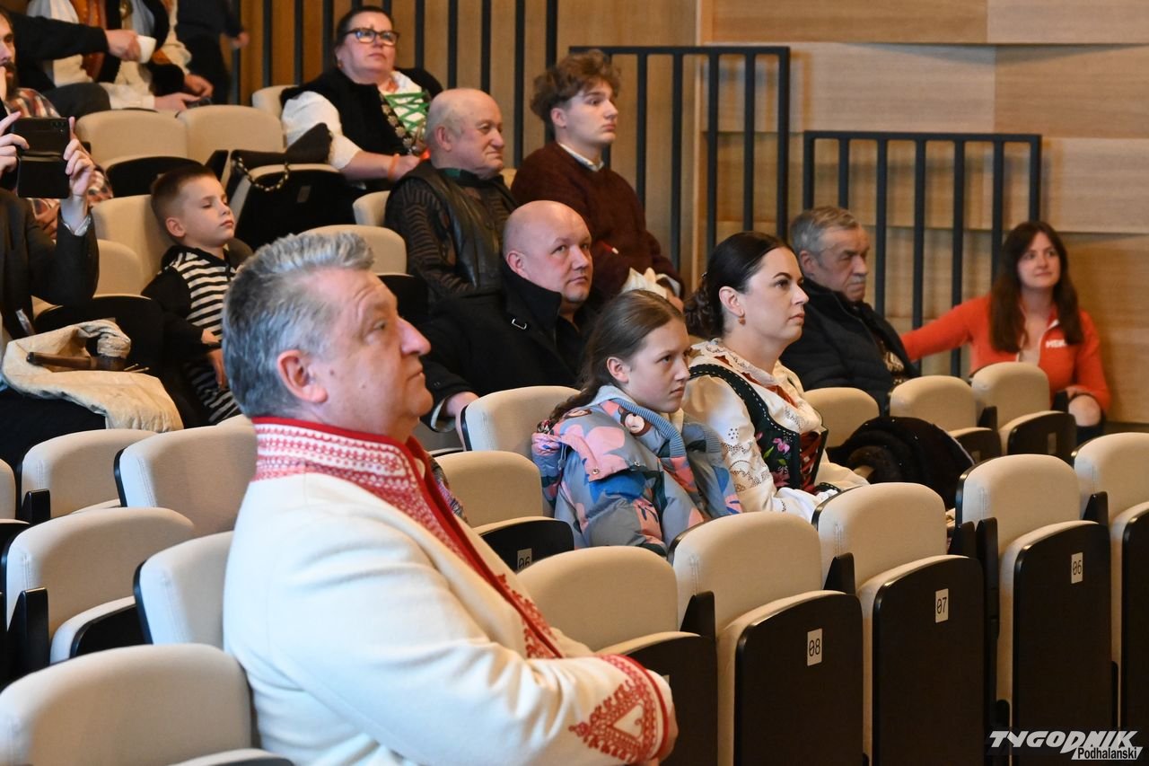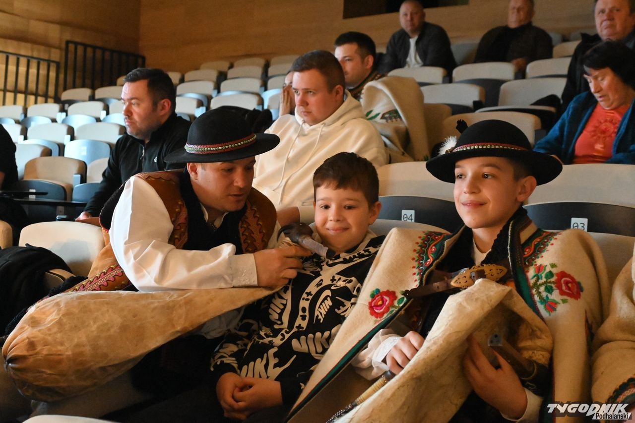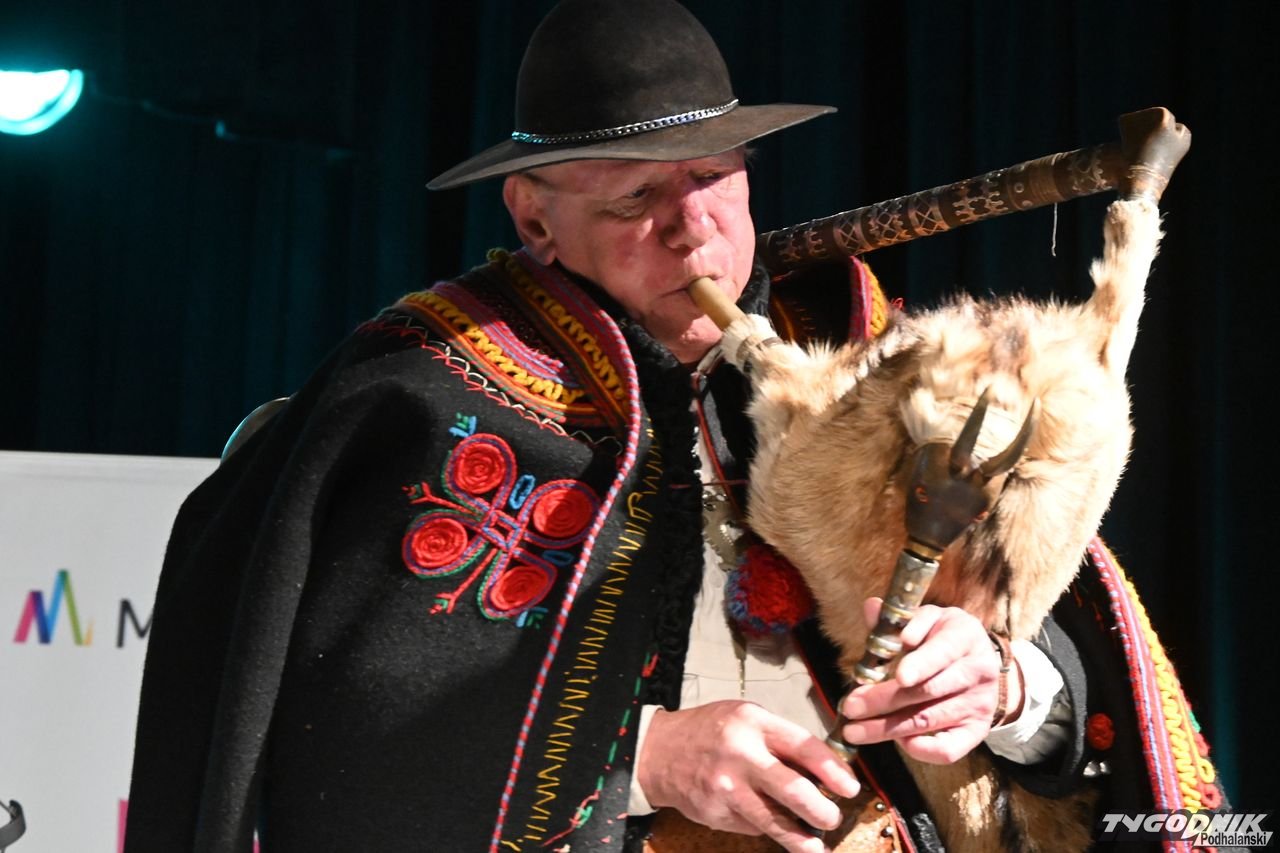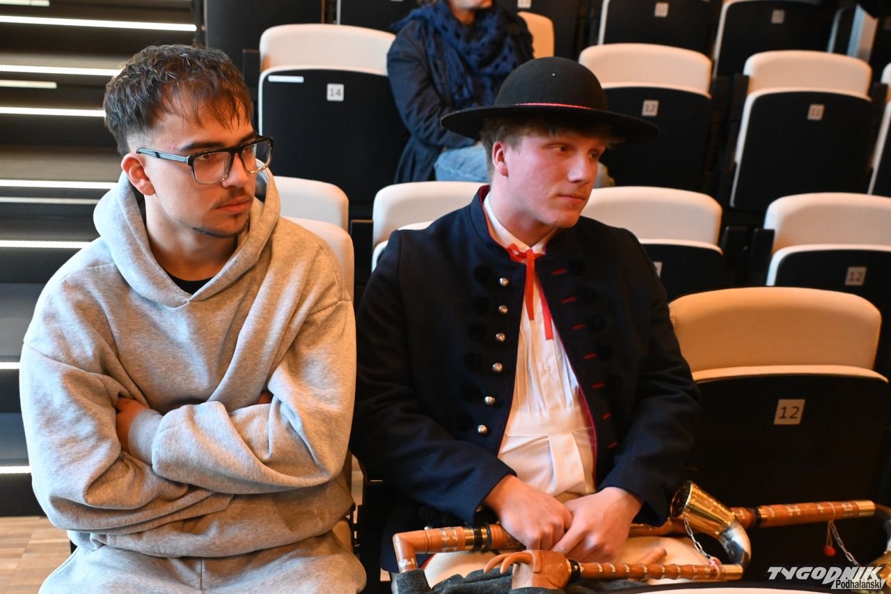 Dudziarski konkurs odbywał się w sali widowiskowej Instytutu Dziedzictwa Niematerialnego Ludów Karpackich. - To jest niezwykle kapryśny instrument, trzeba naprawdę niebywałego zapału, uporu i chęci, żeby grać na dudach. Dlatego tym bardziej wyrażamy wielką wdzięczność wszystkim naszym muzykantom - mówił Bartek Koszarek, dyrektor Domu Ludowego w Bukowinie Tatrzańskiej, który przedstawiał na scenie poszczególnych dudziarzy. Pozdrowił ich także Piotr Gąsienica z Instytutu Dziedzictwa Niematerialnego Ludów Karpackich w Ludźmierzu, który to wraz z Małopolskim Centrum Kultury "Sokół" w Nowym Sączu był organizatorem wydarzenia.