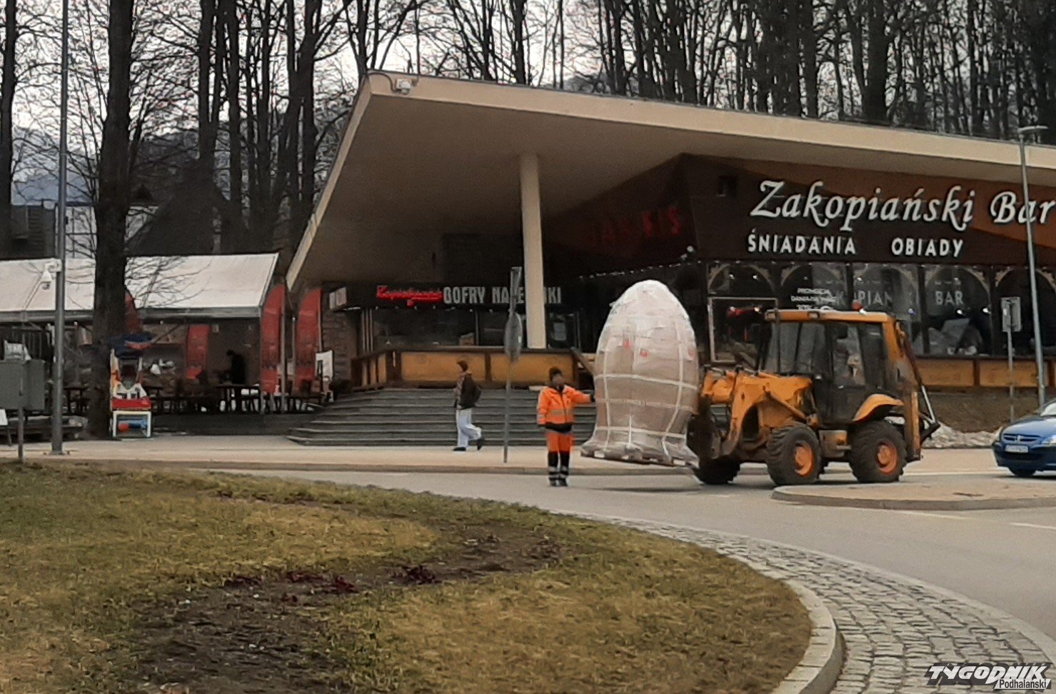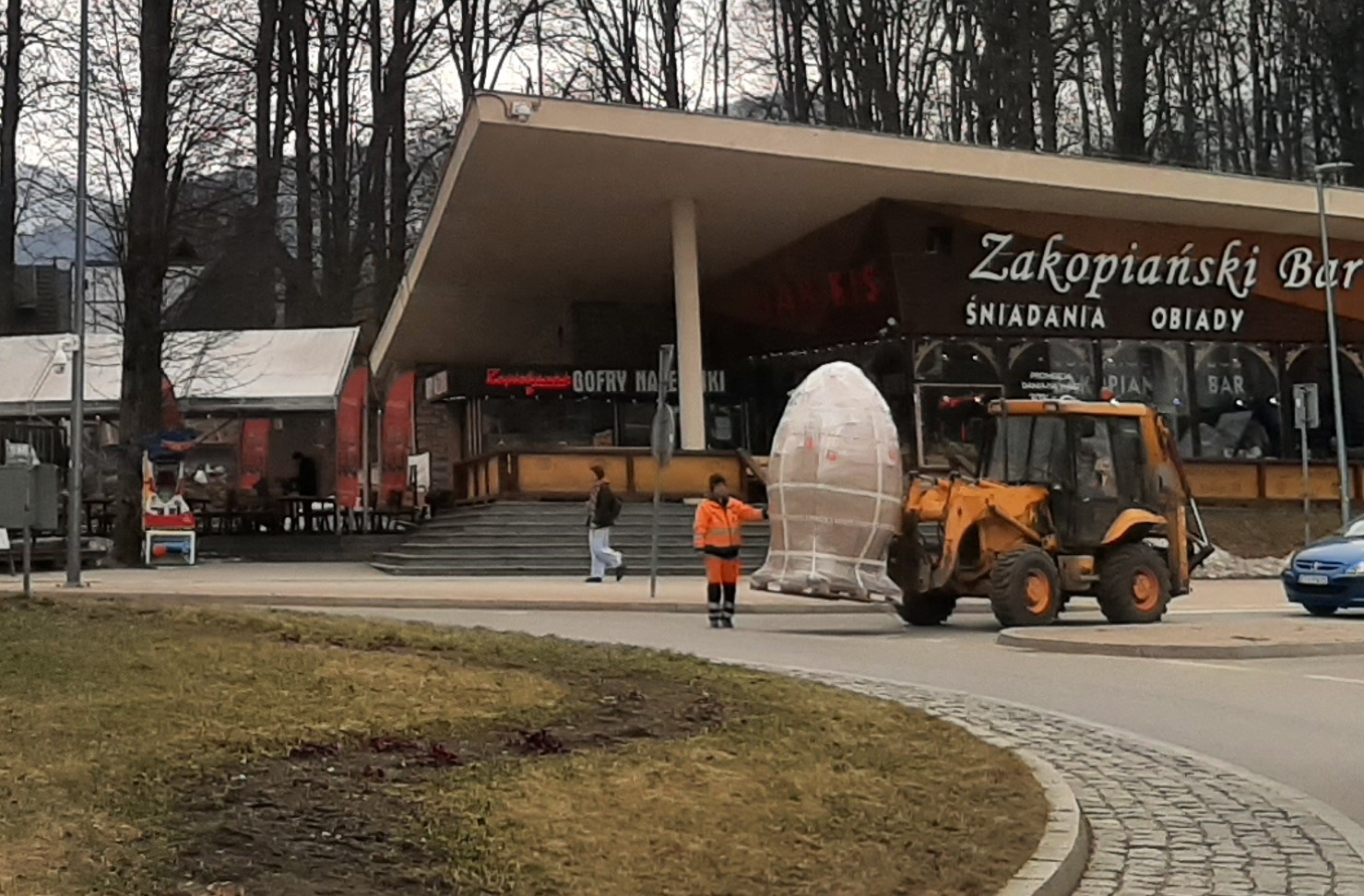 Kalendarzowa wiosna będzie od jutra, a już dziś mamy wiosnę astronomiczną. Przypominają o tym nie tylko kwitnące bazie, ale także montowane na zakopiańskich rondach ozdoby. To kolorowe i ozdobne, wielkie jaja oraz zajączki. Znak, że przed nami okres przedświąteczny i Święta Wielkanocne. Zaobserwowaliśmy moment dostawy ozdób, które przywiezione zostały na paletach na rondo przy dworcu kolejowym. Ozdoby świąteczne ustawiane są dziś sukcesywnie na wszystkich dużych rondach w Zakopanem.