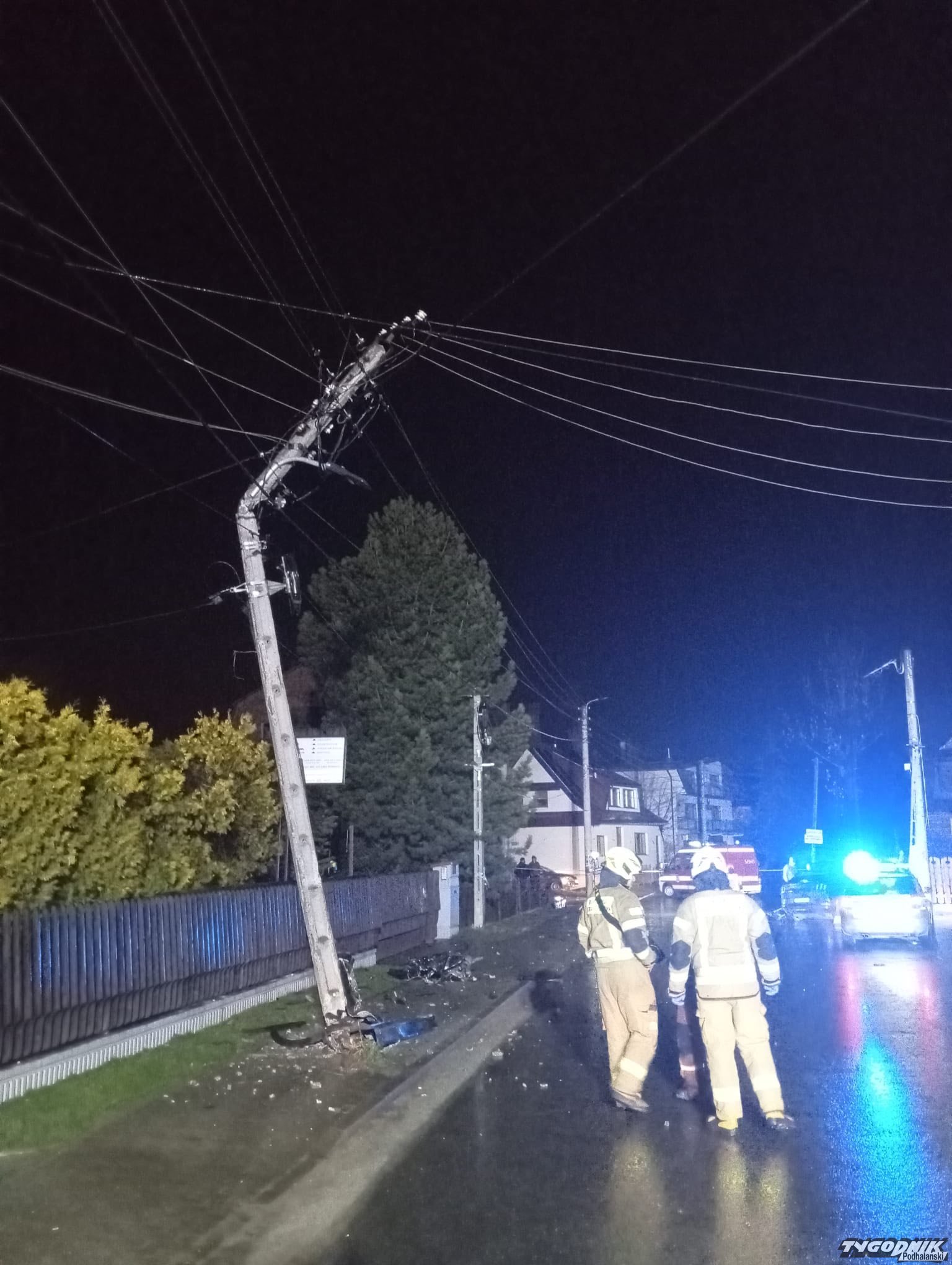 W nocy z 20 na 21 marca strażacy z Ochotnicza Straż Pożarna w Poroninie interweniowali przy groźnie wyglądającej kolizji na ul. Piłsudskiego. Auto osobowe uderzyło w słup energetyczny, powodując poważne utrudnienia w ruchu.