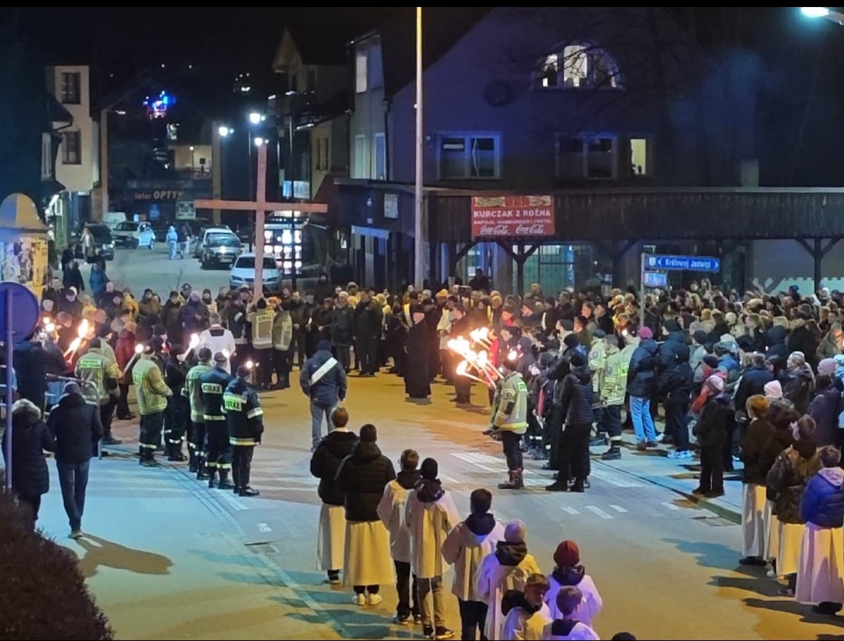 Droga Krzyżowa, tradycyjnie, rozpoczęła się przy kościele Najświętszego Serca Pana Jezusa w Nowym Targu. Potem wszyscy uczestnicy wieczornego nabożeństwa przeszli ulicami Królowej Jadwigi, Krzywą, Kopernika, Szaflarską aż do Rynku.