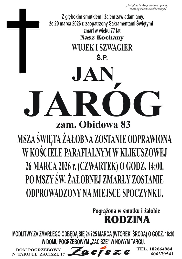 2026-03-23 21:00 Gorce na osi czasu 2026-03-23 20:00 Lokomotywa, która wyjechała na ulicę. Rocznica niezwykłego zdarzenia w Zakopanem 1 2026-03-23 19:30 Nowa inicjatywa dla kobiet w Zakopanem 2026-03-23 19:00 Nie żyje Zbigniew Kresek, autor górskich przewodników 2026-03-23 18:30 Żabie gody rozpoczęte 1 2026-03-23 18:00 Skandal w Grywałdzie (WIDEO) 9 2026-03-23 17:00 Maturzyści z Zakopanego poznawali tajniki pracy w Policji 1 2026-03-23 16:25 Motocyklem 117 km na godz. w obszarze zabudowanym 3 2026-03-23 15:57 Dewastował przystanek i wbiegł pod auta. 20-latek zatrzymany 1 2026-03-23 15:49 Brydżowe spotkanie w Opolance. Jedni grają, inni kibicują 2026-03-23 15:30 Policyjny nos nie zawiódł dzielnicowego 2 2026-03-23 15:00 Wielki sukces Maćka Naglaka z Zakopanego 4 2026-03-23 14:49 Optymalizacja kosztów stanu surowego: jak uniknąć błędów w kosztorysie? 2026-03-23 14:17 Uciekał przed policją, miał prawo jazdy od pół roku 2026-03-23 13:39 Za przekroczenie dozwolonej prędkości 38-latek stracił prawo jazdy 2026-03-23 13:38 Płyty gumowe na taras - jakie są zalety takiego rozwiązania? 2026-03-23 13:36 Alternatywna rzeczywistość XIX w. i nowy świat XXII wieku. Mamy dla Was książki 2026-03-23 13:01 Codzienne sprawy potrafią przytłoczyć. Jak sobie je uprościć bez stresu? 2026-03-23 12:59 Sprawca zderzenia w Stasikówce ukarany mandatem 1 2026-03-23 12:16 Własny warsztat czy stabilny etat w dużej firmie meblarskiej? Przegląd perspektyw dla stolarzy w regionie 2026-03-23 11:59 Wieczorna interwencja policjantów na ul. Zwierzynieckiej 3 2026-03-23 11:39 Logistyka pod lupą - Jak wieże mTower wyeliminowały "wąskie gardła" i kradzieże w centrach przeładunkowych 2026-03-23 10:59 Schronisko komentuje zarzuty, prowadzący podkreślają, że dobro zwierząt jest najważniejsze 8 2026-03-23 10:46 Plama oleju na Zakopiance 2026-03-23 09:59 Rusza remont mostu na Walową Górę. Mieszkańcy protestują - odetną nas od świata (WIDEO) 15 2026-03-23 08:59 Jeśli te prognozy się sprawdzą w Tatrach spadnie metr śniegu 2026-03-23 08:00 1. Przegląd Dziecięcych Zespołów Regionalnych MAŁE LELUJE. Zgłoszenia 2026-03-22 20:30 Komunikat wojewody małopolskiego w sprawie kontroli w schronisku w Nowym Targu 12 2026-03-22 20:17 Czołowe zderzenie w Stasikówce. Jedna osoba ranna 4 2026-03-22 20:00 200 lat temu ludzie w Rabce zdrowia nie mieli 2026-03-22 19:00 Utrudnienia w ruchu na ulicy Dworskiej w Dzianiszu 1 2026-03-22 18:00 Nowotarska Państwowa Szkoła Muzyczna zaprasza na "Koncert Pasyjny" 1 2026-03-22 16:43 Koszmarny upadek Kacpra Tomasiaka. Najnowsze informacje Polskiego Związku Narciarskiego 1 2026-03-22 16:00 Piękne miejsce w Dolinie Chochołowskiej. Tu kręcono Janosika (WIDEO) 1 2026-03-22 15:00 Zgłoś zawodników do pierwszych Mistrzostw Szkół Zakopanego w Szachach 2026-03-22 14:00 Tajemnice starego cmentarza w Szczawnicy 1 2026-03-22 13:12 Pożar auta na zakopiance (WIDEO) 1 2026-03-22 12:13 Polska na wodnym kredycie. Jak tracimy miliardy litrów wody rocznie 8 2026-03-22 11:59 Pobudka na Nosalu (WIDEO) 2026-03-22 11:00 Szukali osób zaginionych 2026-03-22 10:21 Zakopane - sprzedam STOŁKI BAROWE w idealnym stanie 2026-03-22 10:00 Arabskie lato pod Giewontem zagrożone? Wojna i drożyzna niepokoją branżę 29 2026-03-22 09:36 Na Orawie znów płonęły trawy 2 2026-03-22 09:17 Komunikat nowotarskiej policji 1 2026-03-22 09:00 Uprzedź depresję, stop hejtowi! Konferencja profilaktyczna 4 2026-03-22 08:01 Tak powstaje szarlotka w Roztoce 2026-03-22 07:30 Znamy zwycięzców drugiej edycji konkursu Jazzowe Talenty 2026-03-21 21:00 Nie wypadek, ale upadek. Miejska Droga Krzyżowa 22 2026-03-21 20:18 Premiera Ostatniego smreka w Zakopanem. Spotkanie z Marią Gąsienicą-Zawadzką (WIDEO) 2 2026-03-21 19:52 Balony na Równi Krupowej i Gubałówce (WIDEO) 4