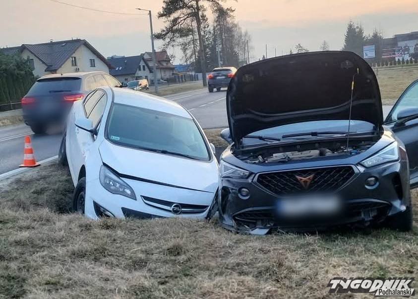 Po zderzeniu samochody wylądowały w rowie