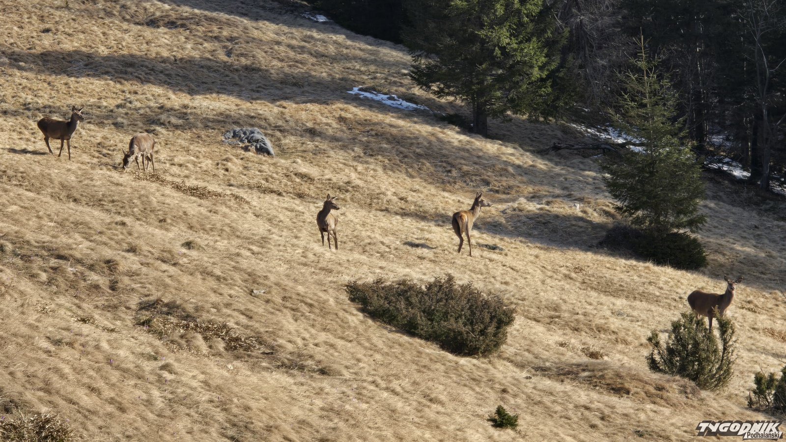 Dziś rano na Kalatówkach w pięknym słońcu mogliśmy obserwować stado łani.