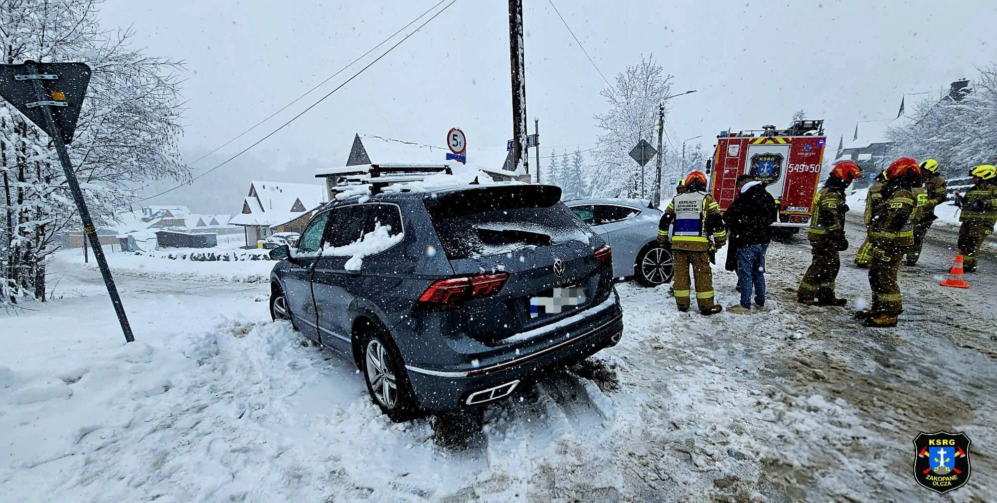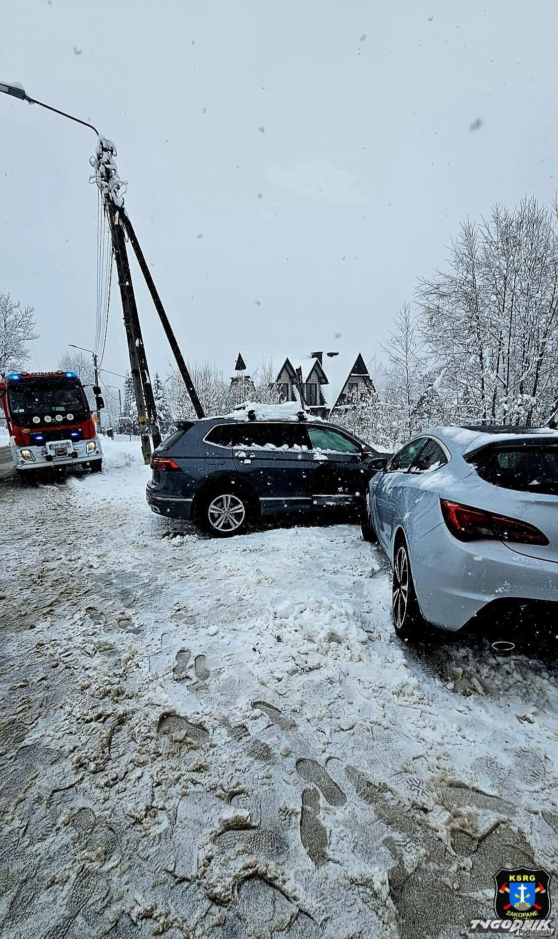 - Na szczęście mimo tak trudnych warunków drogowych wydarzyły się tylko dwie kolizje. Apelujemy o zachowanie szczególnej ostrożności. A "zimówki" jeszcze muszą jakaś czas zostać na naszych samochodach - zaznacza asp. sztab. Roman Wieczorek, rzecznik prasowy zakopiańskiej policji. Na zdjęciach kolizja na Olczy Mrowcach w Zakopanem.