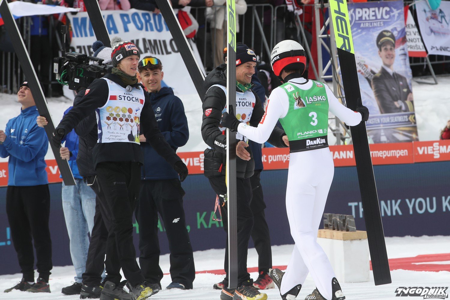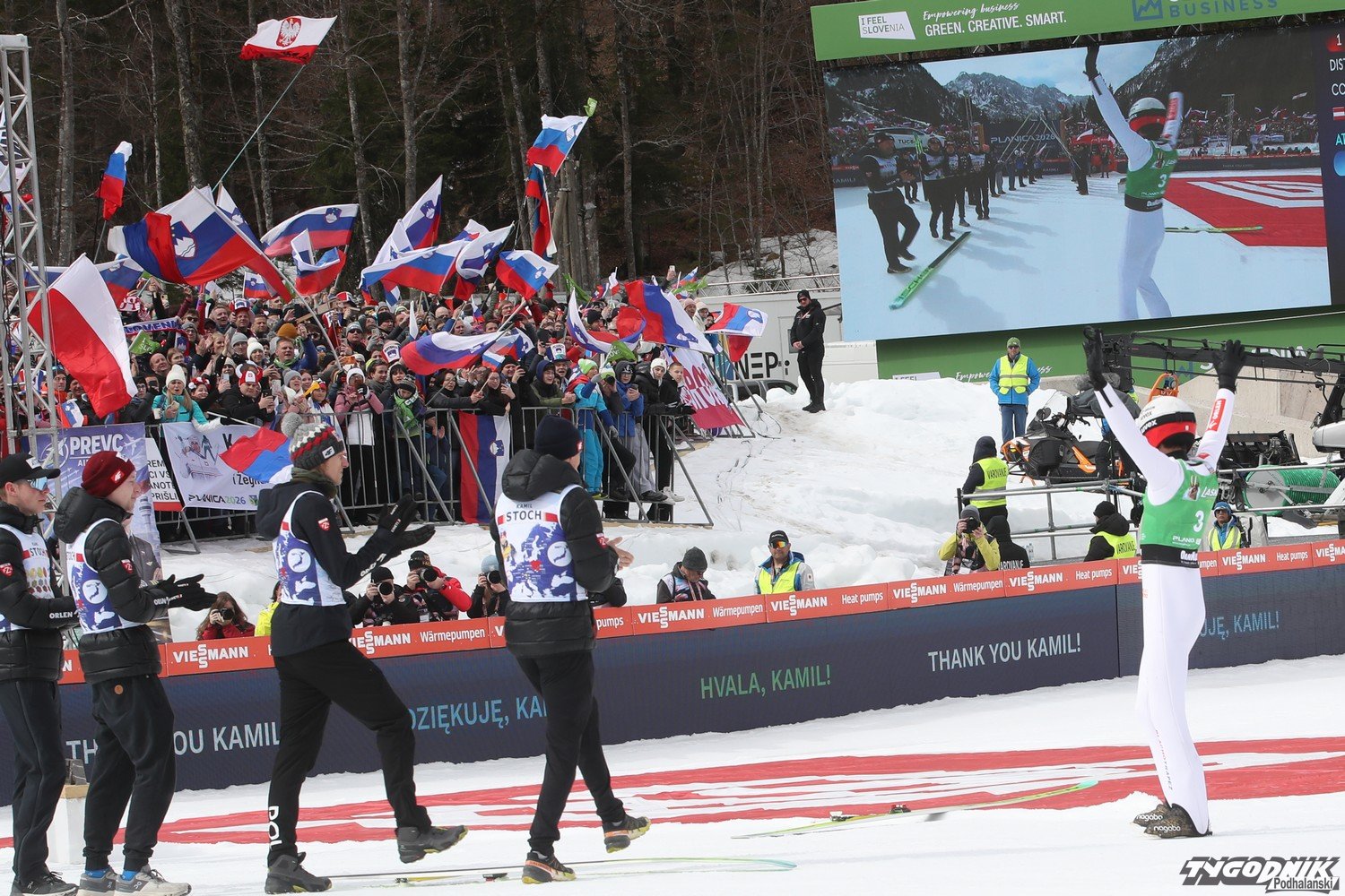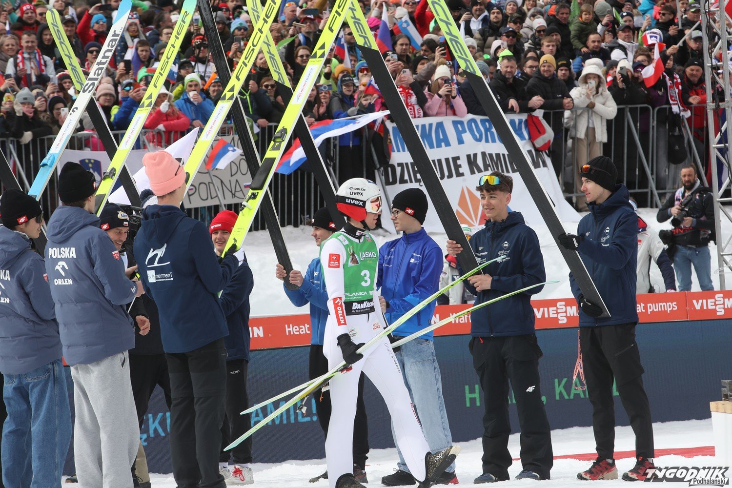 Do Planicy zjechało wielu kibiców z Polski, także z Podhala i jego rodzinnej miejscowości Zębu. W pożegnaniu Kamila z zawodowym skakaniem brała udział też jego rodzina. O ostatnim skoku naszego mistrza pisaliśmy tu: [24tp.pl] Kamil Stoch oddał swój ostatni skok. Dziękujemy mistrzu za te lata wzruszeń i sukcesów