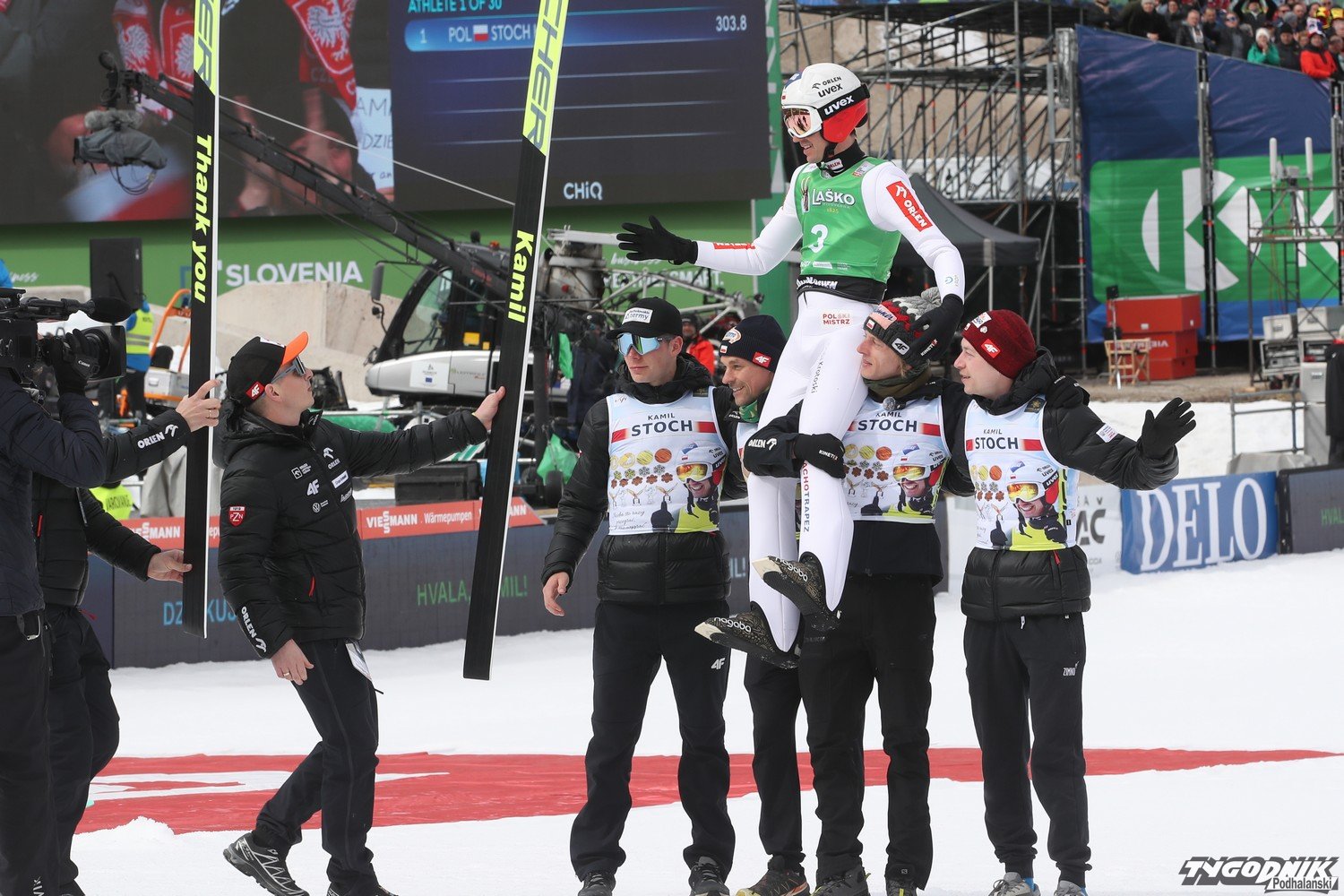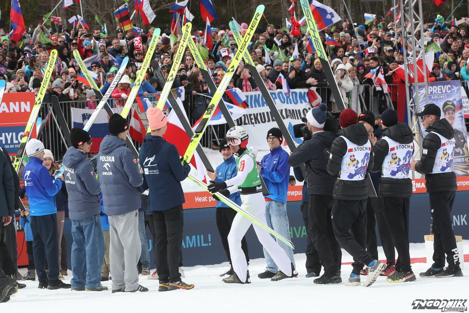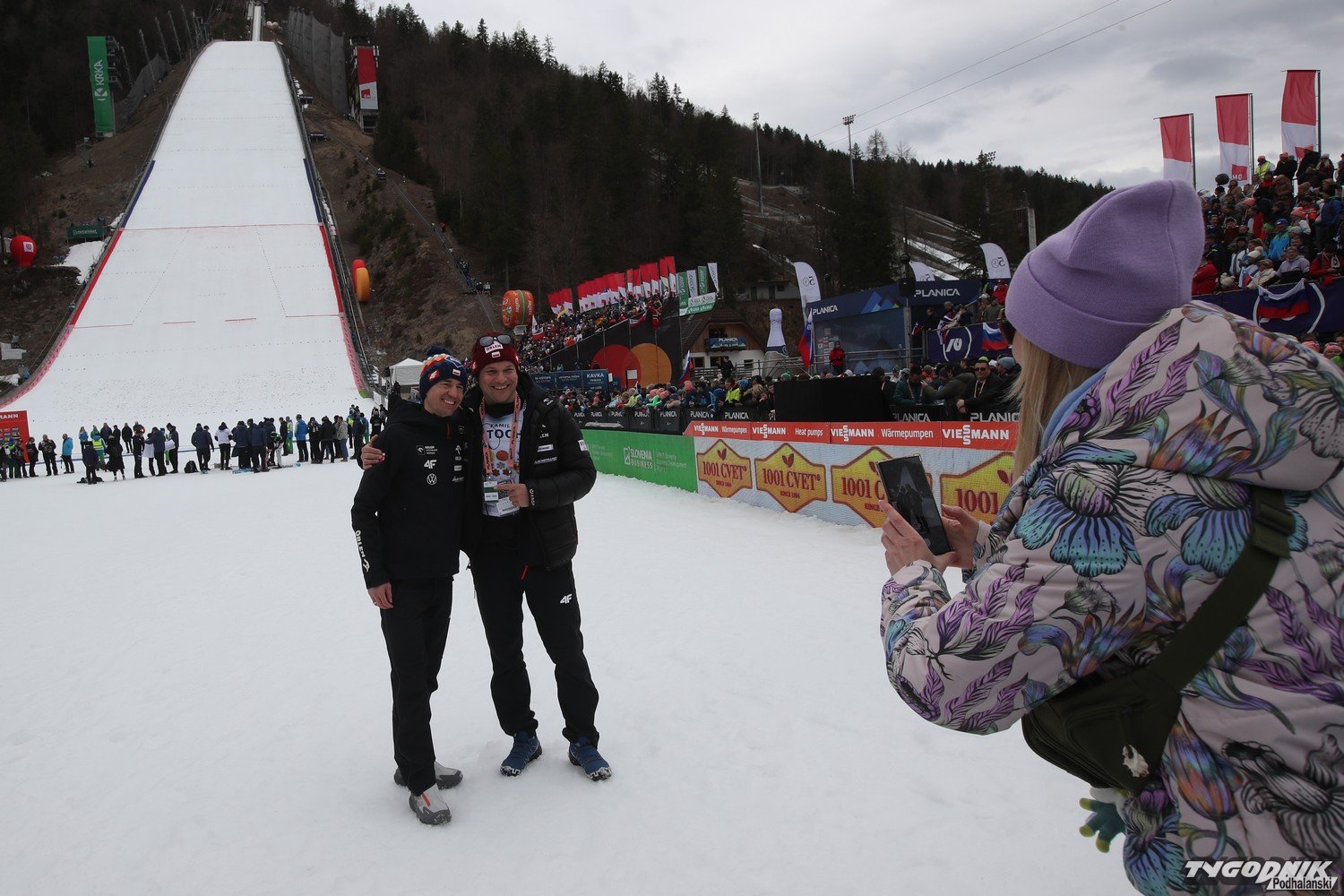 Do Planicy zjechało wielu kibiców z Polski, także z Podhala i jego rodzinnej miejscowości Zębu. W pożegnaniu Kamila z zawodowym skakaniem brała udział też jego rodzina. O ostatnim skoku naszego mistrza pisaliśmy tu: [24tp.pl] Kamil Stoch oddał swój ostatni skok. Dziękujemy mistrzu za te lata wzruszeń i sukcesów