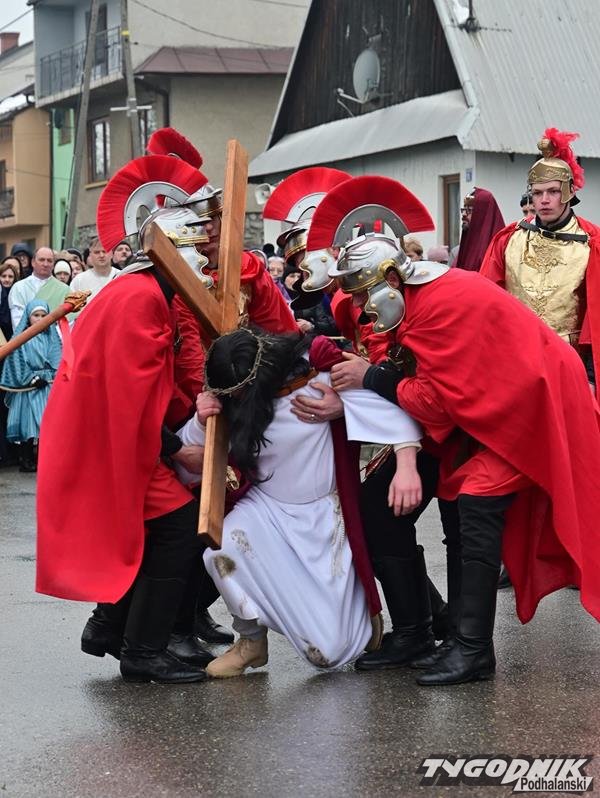 Już po raz czwarty w Niedzielę Palmową Maria Wnęk wraz z tancerzami zespołu Zielony Jawor przygotowała Drogę Krzyżową ulicami Krempach. Mimo bardzo niesprzyjającej, deszczowej i chłodnej pogody wydarzenie odbyło się zgodnie z planem, przyciągając licznych uczestników i widzów. Trudne warunki nie zniechęciły ani organizatorów, ani mieszkańców – przeciwnie, nadały całemu widowisku jeszcze bardziej poruszający charakter. - Szkoda jednak, że tak bardzo się oziębiło, bo nie zrobiliśmy wszystkiego wg planu - ubolewali członkowie zespołu.
