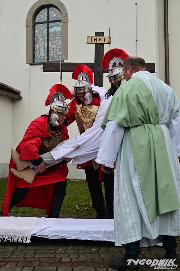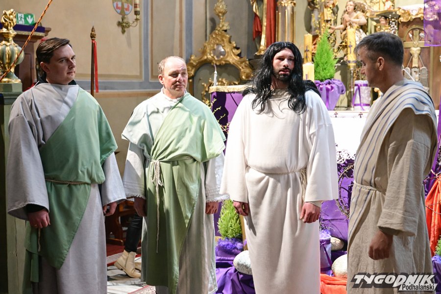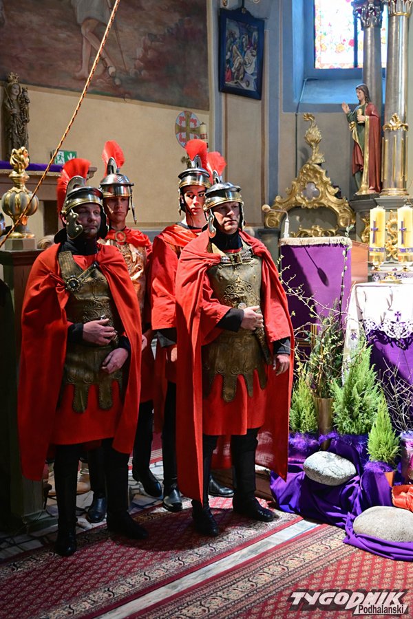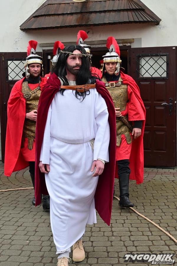 A jak przystało na zespół Zielony Jawor i jego założycielkę, nie są to zwyczajne wielkopostne nabożeństwo, lecz pełne emocji widowiska odegrane w strojach z epoki. Nie inaczej było tym razem. Punktualnie o godz. 15 oprawcy wyprowadzili Jezusa z krempaskiej świątyni, a grający Piłata Mieczysław Sobolak w wymownym geście umył ręce...