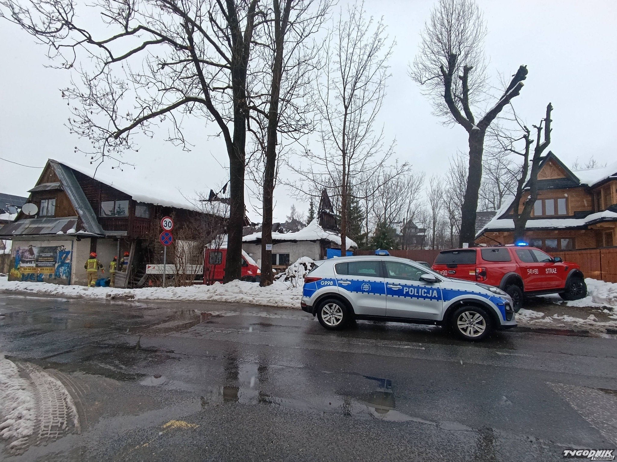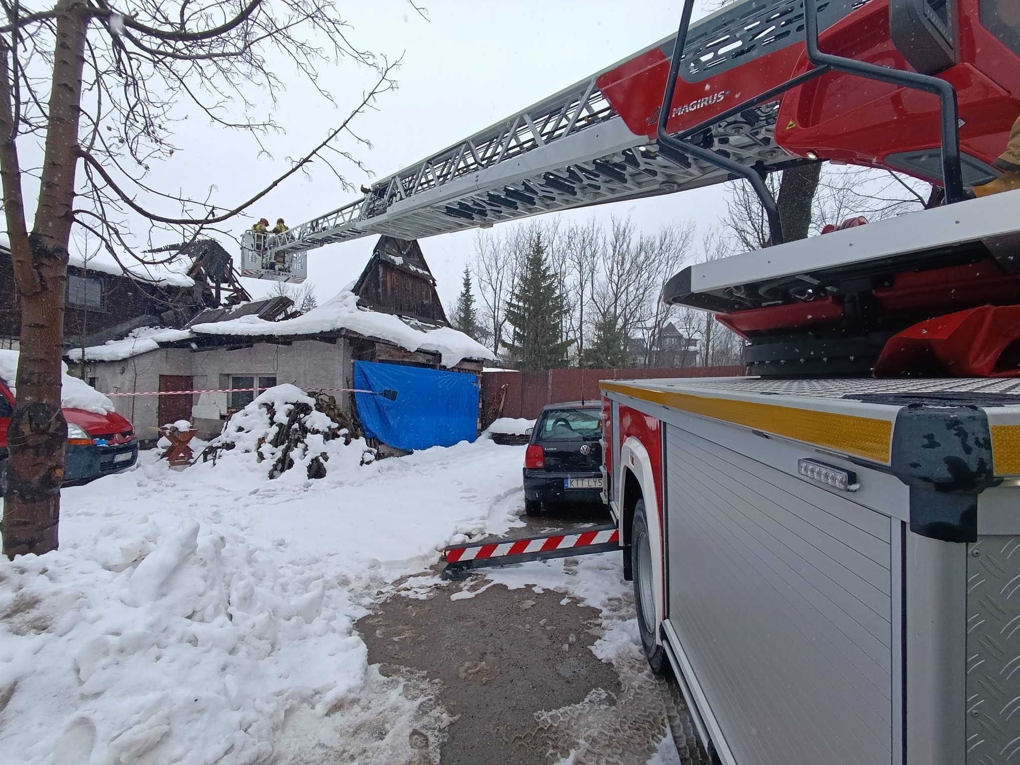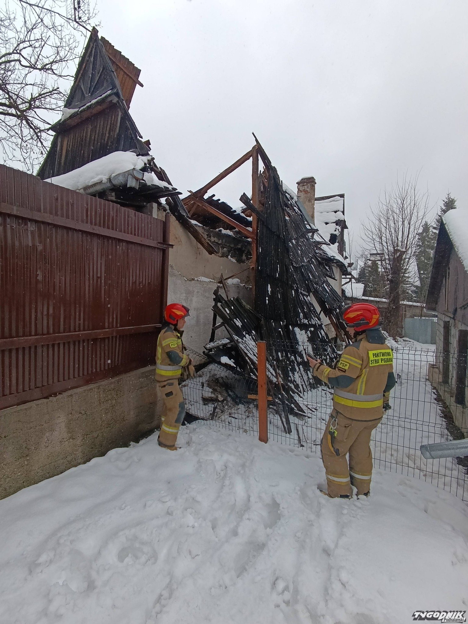 Strażacy interweniowali na Kasprusiach w Zakopanem, gdzie pod naporem ciężkiego, mokrego śniegu zawalił się dach opuszczonego budynku.
