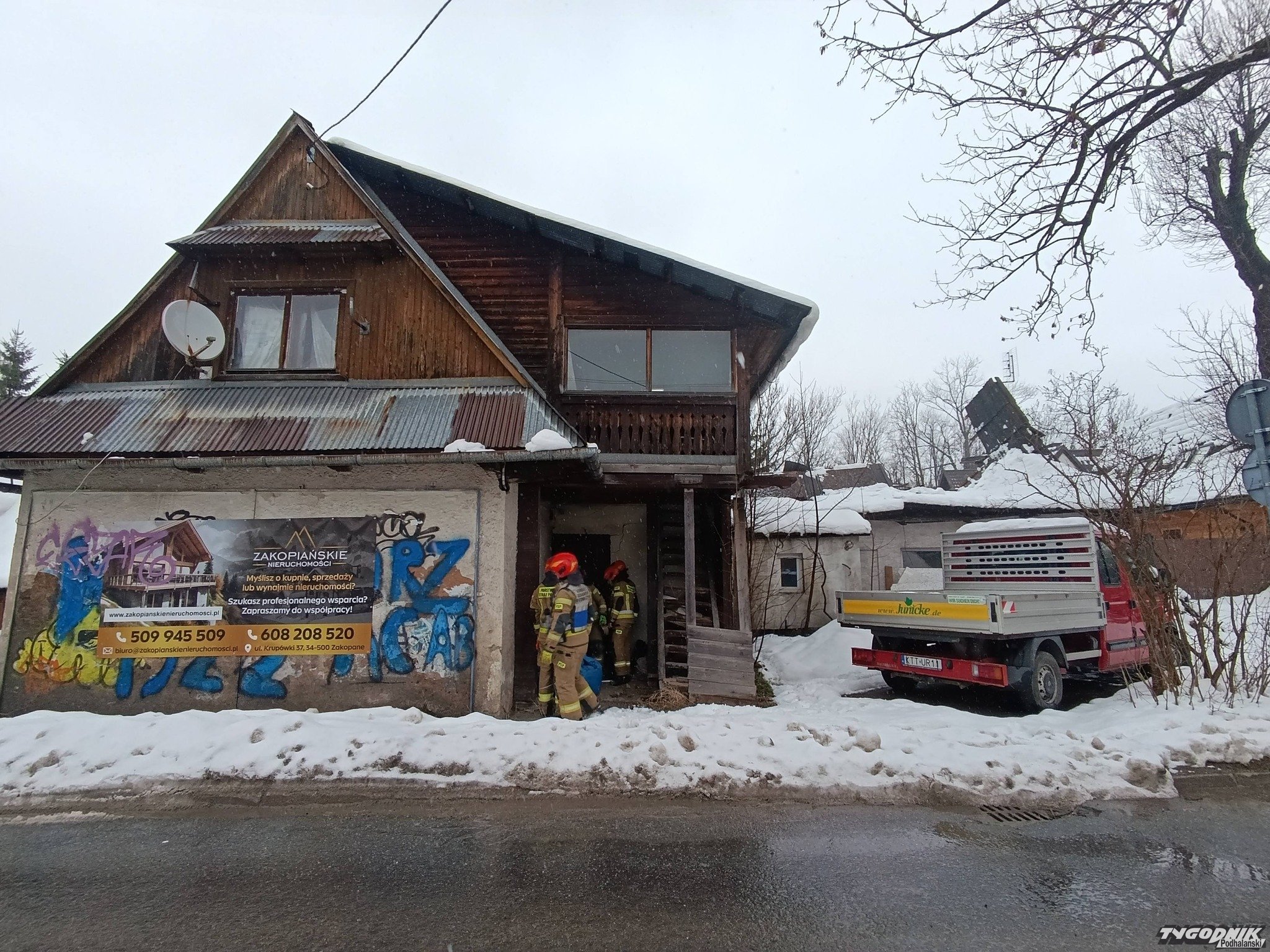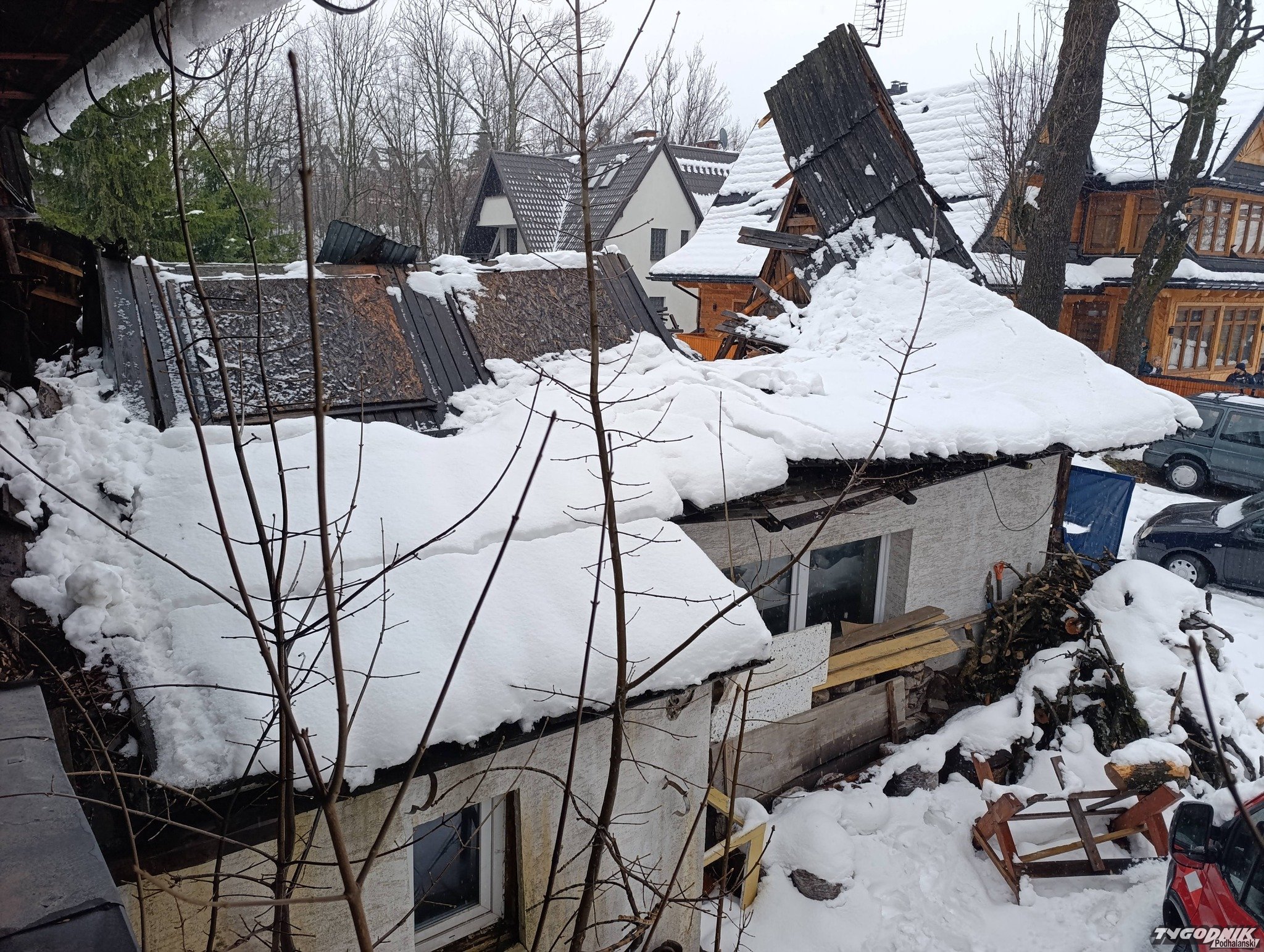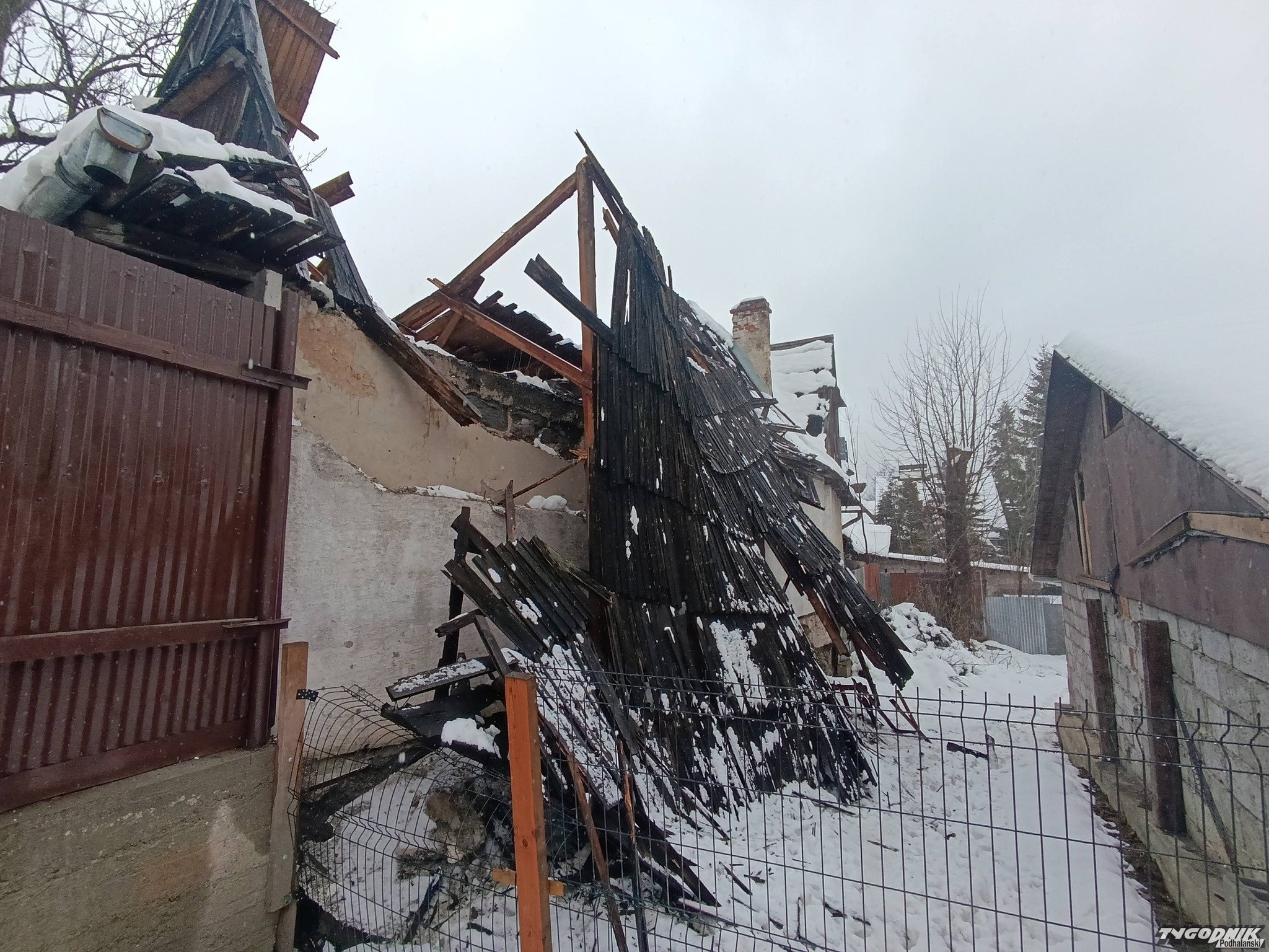 Zawalony dach pustostanu w Zakopanem