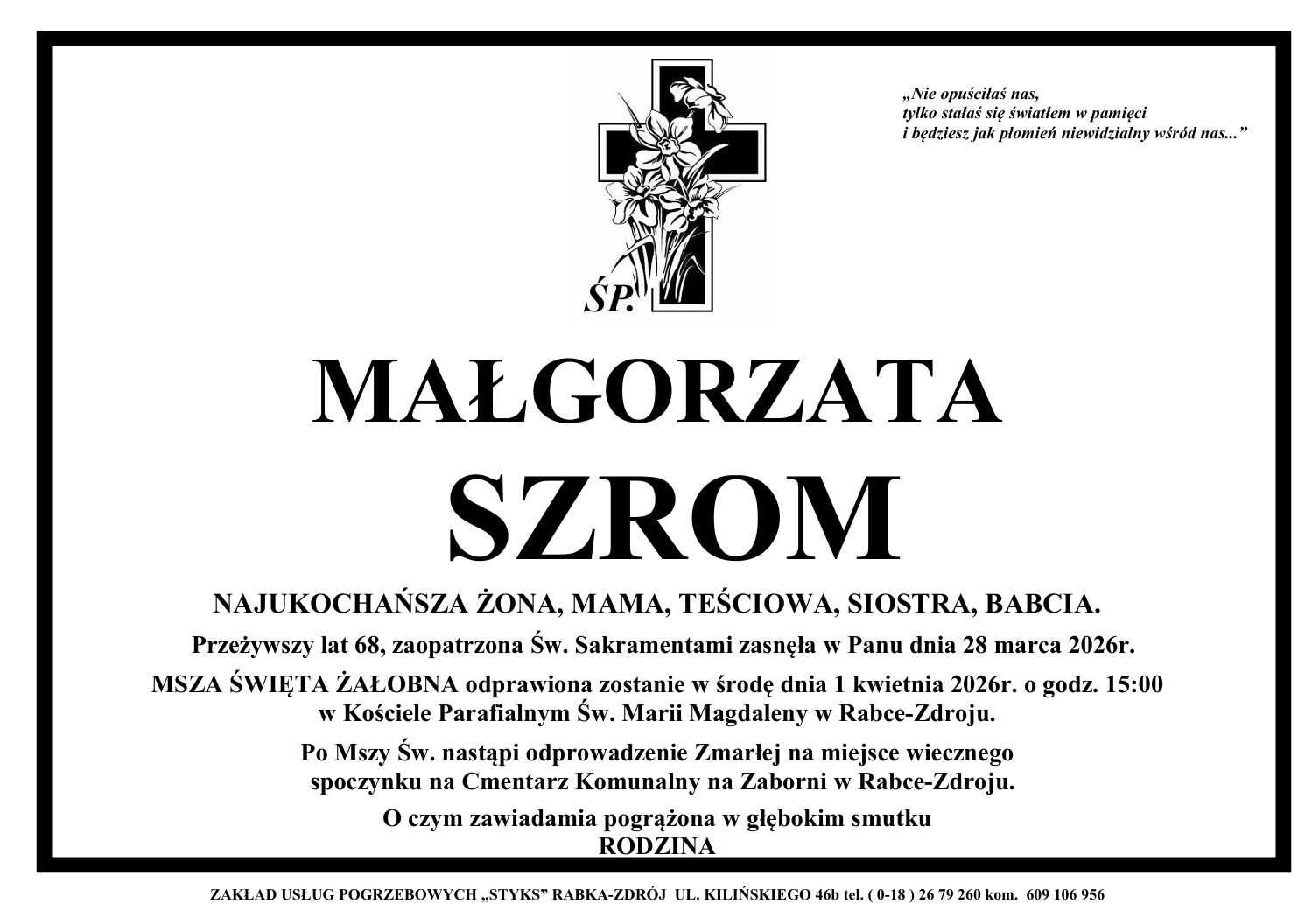 Z głębokim żalem przekazujemy smutną informację.