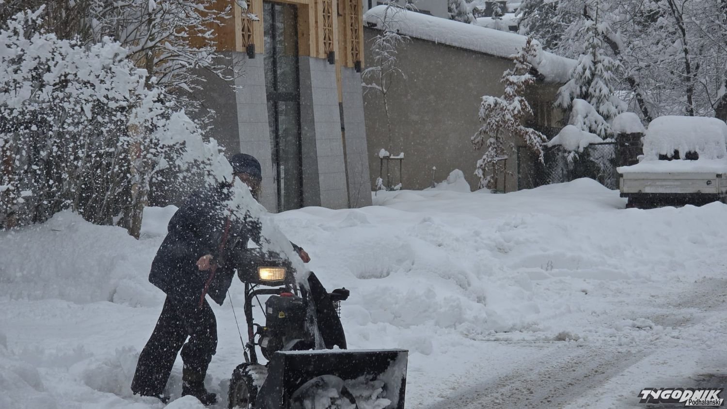 Macie siłę łopatować? Zakopane pod śniegiem. Wiosna z łopatą i odśnieżarką w tle (WIDEO)