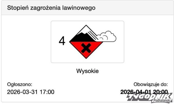 Ratownicy ostrzegają przed skrajnie niebezpiecznymi warunkami w górach. W Tatrach ogłoszono 4. stopień zagrożenia lawinowego, co oznacza realne ryzyko zejścia lawin nawet przy niewielkim obciążeniu śniegu.
